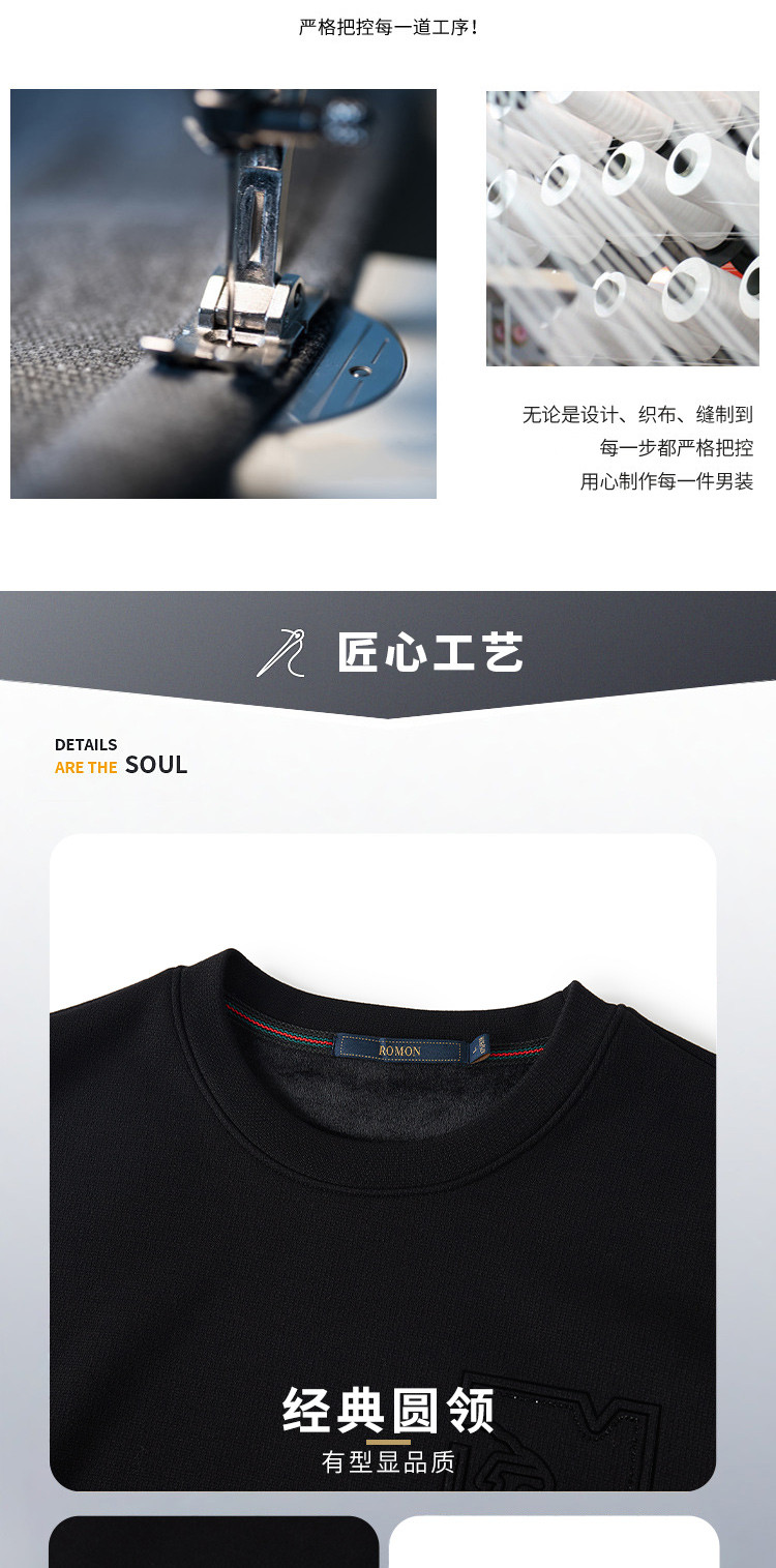 【加绒保暖】罗蒙卫衣男秋冬季防风防寒圆领休闲百搭通勤男士卫衣上衣