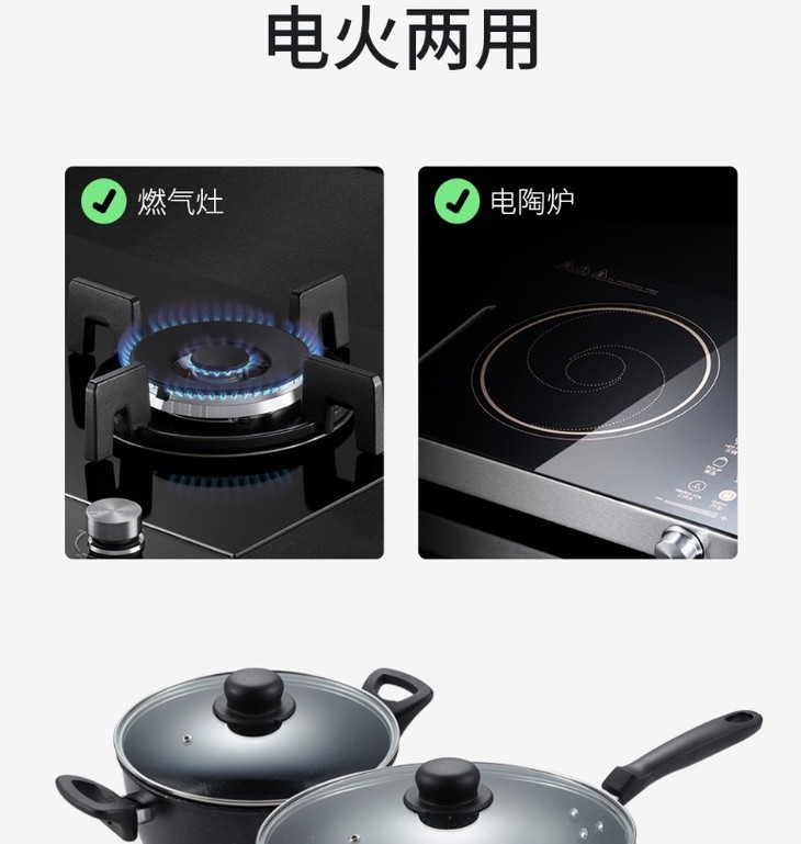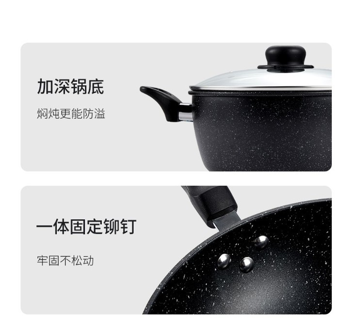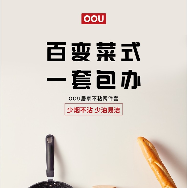 【一般贸易】【授权商品】OOU【锅具两件套】不粘汤锅炒锅燃气灶电陶炉通用【官方控价399】