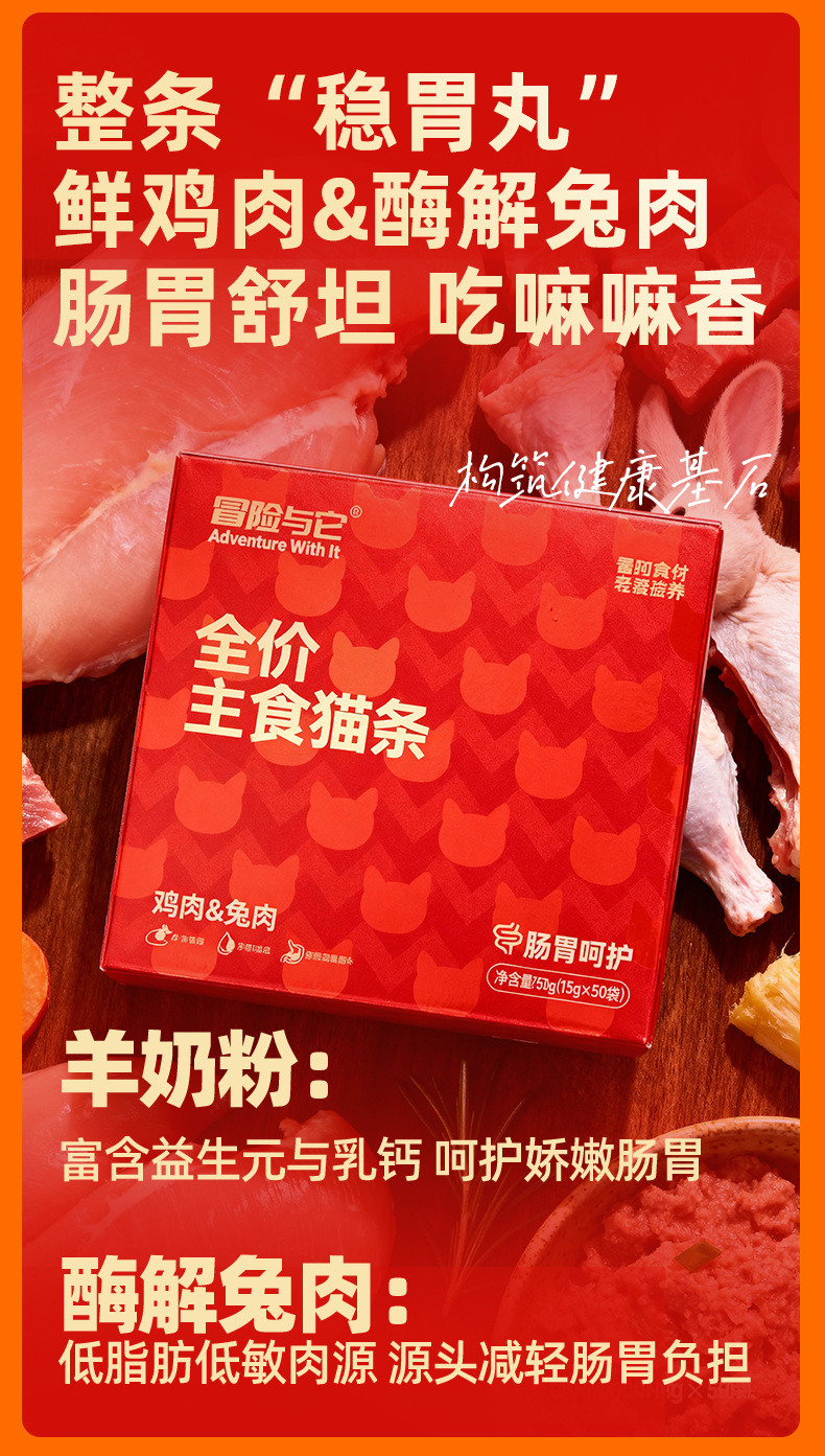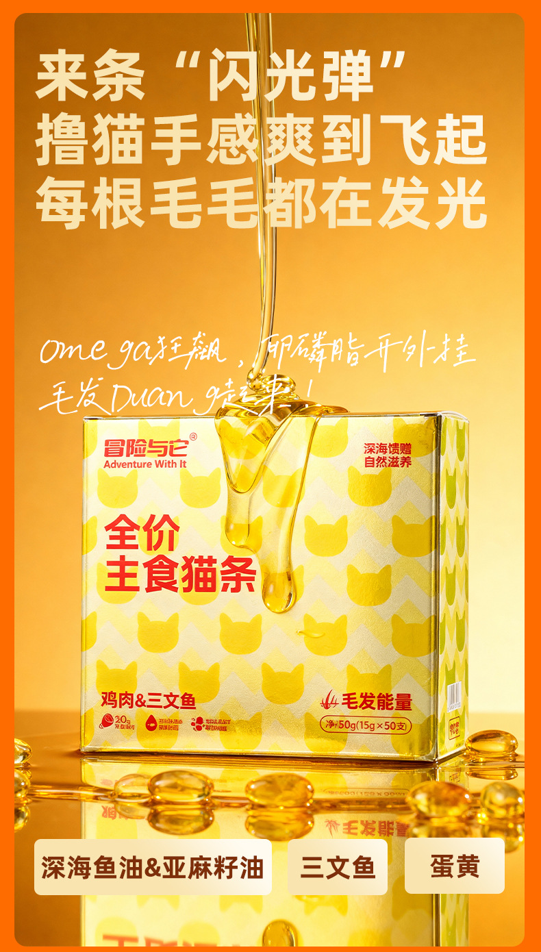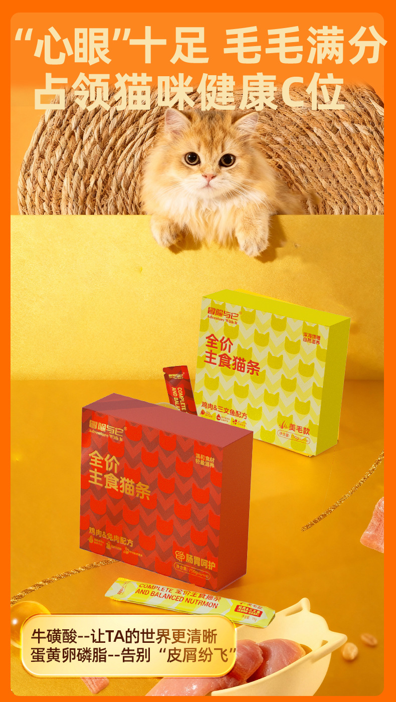 冒险与它全价主食猫条15gX50支盒装 鱼油靓毛猫咪湿粮批发