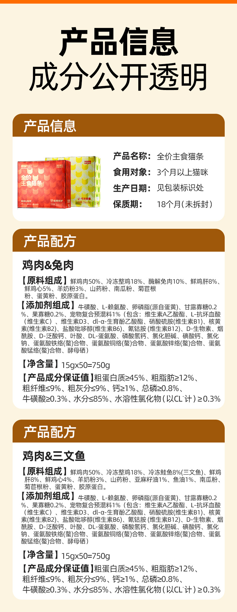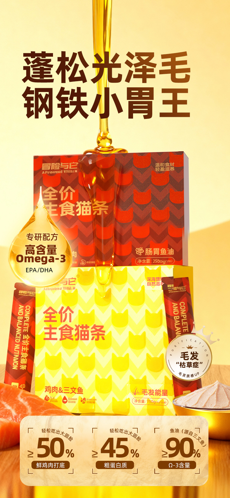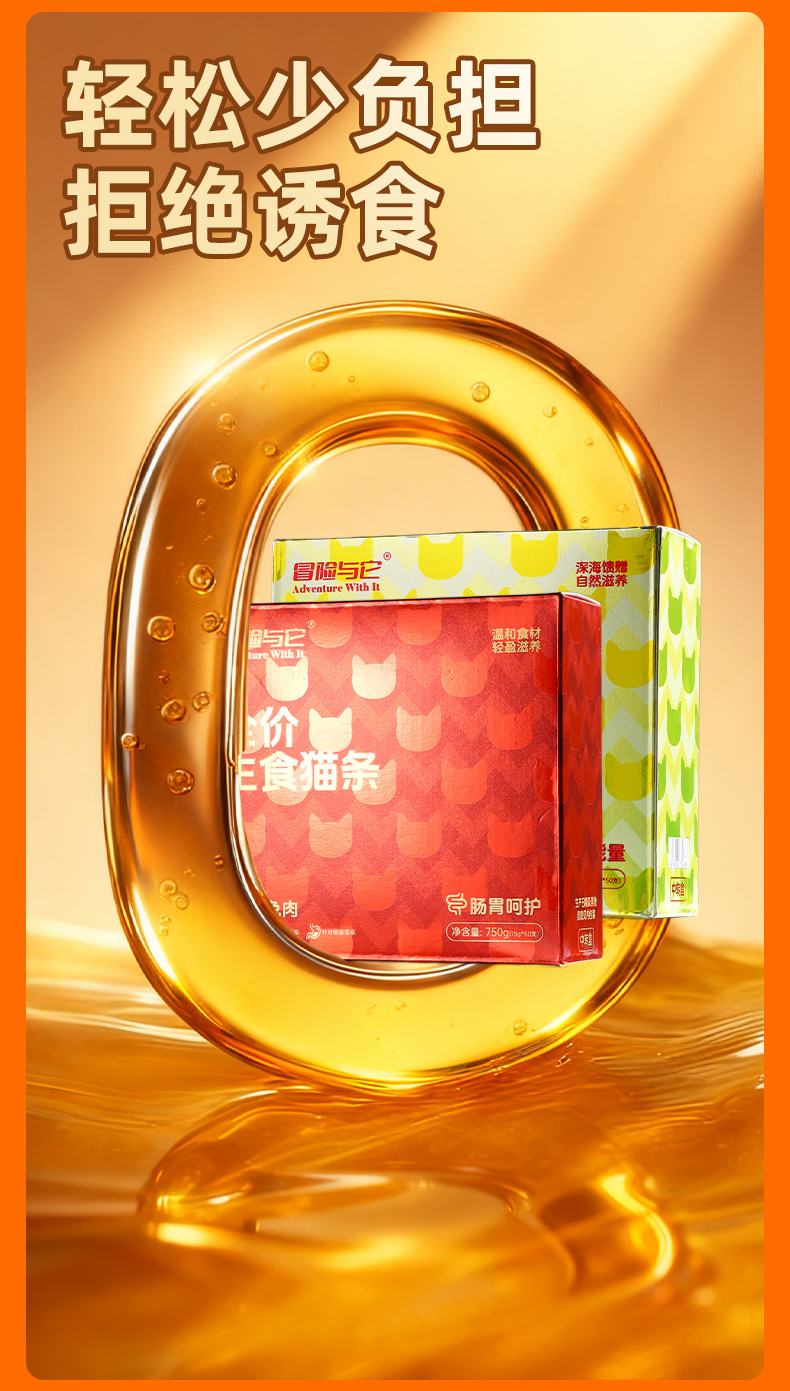 冒险与它全价主食猫条15gX50支盒装 鱼油靓毛猫咪湿粮批发