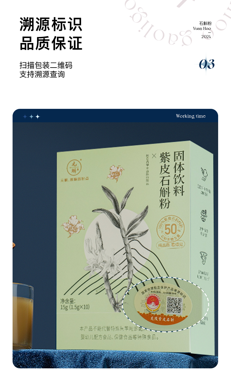 云南高黎贡山紫皮石斛粉 纯粉 15g/盒【答摩】