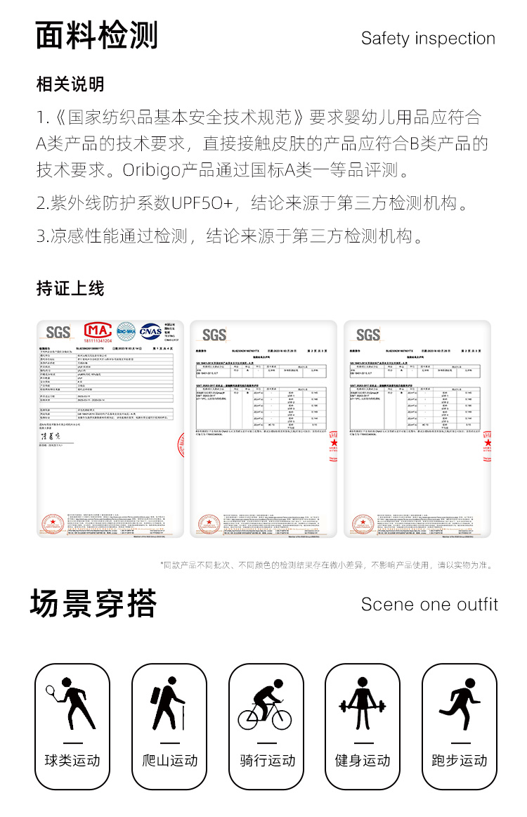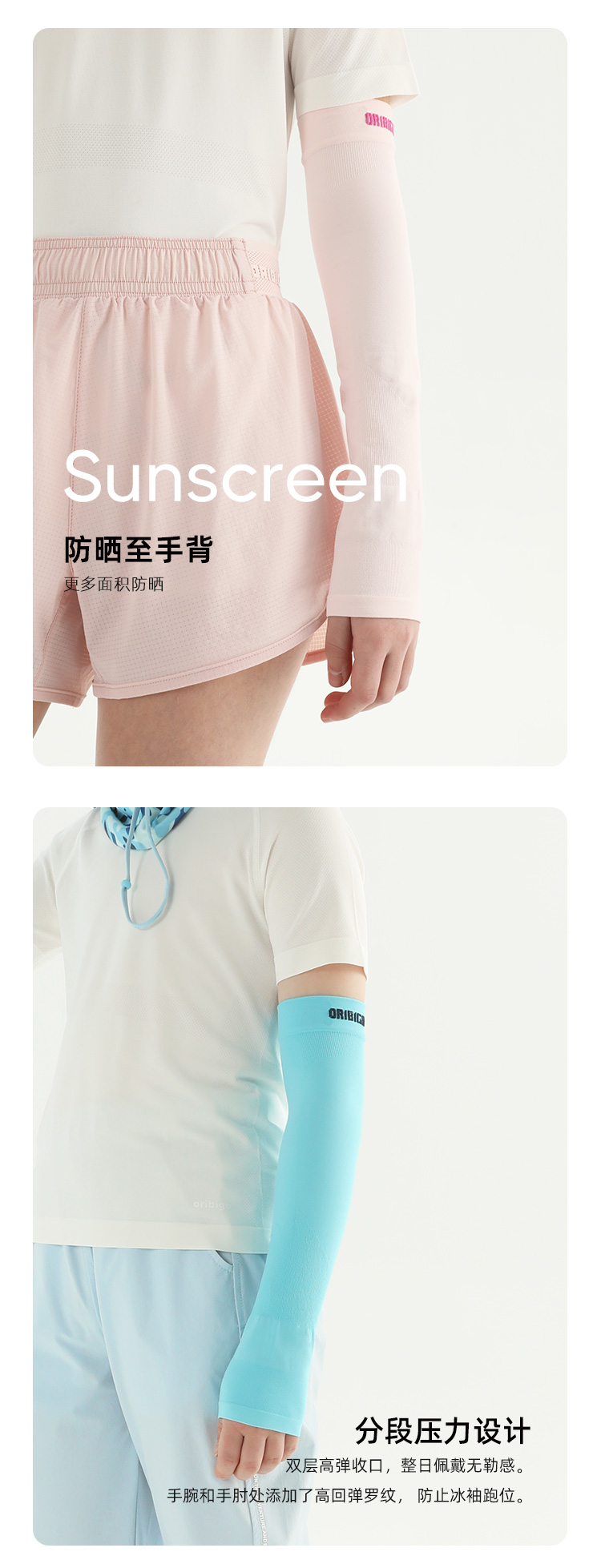 oribigo儿童运动凉感冰袖/儿童无缝冰袖