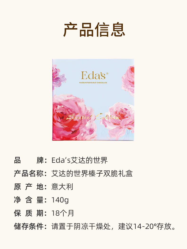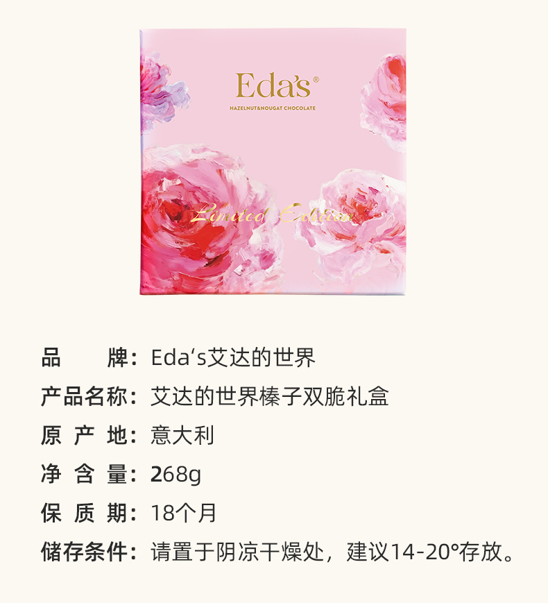 艾达的世界榛子双脆礼盒巧克力268g/140g /040311/041049内含整颗完整的榛子