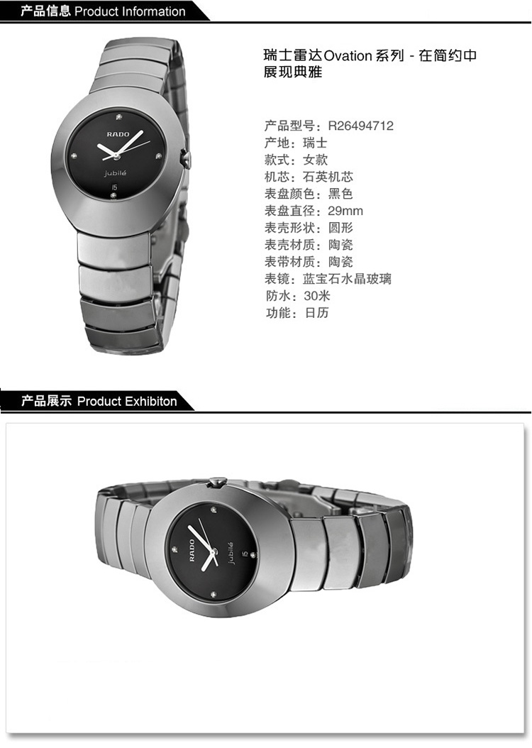 雷达 RADO 瑞士手表 Ovation系列时尚休闲简约商务石英女士手表 R26494712