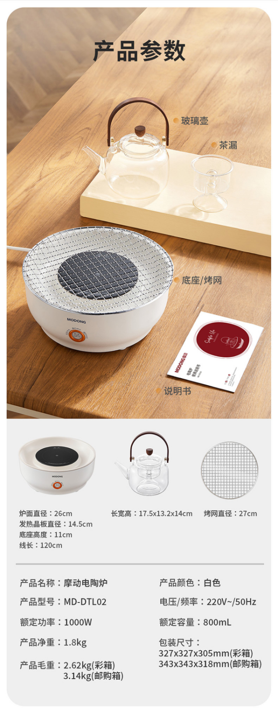 【产品配置】:底座+烤网+茶壶+茶漏+说明书