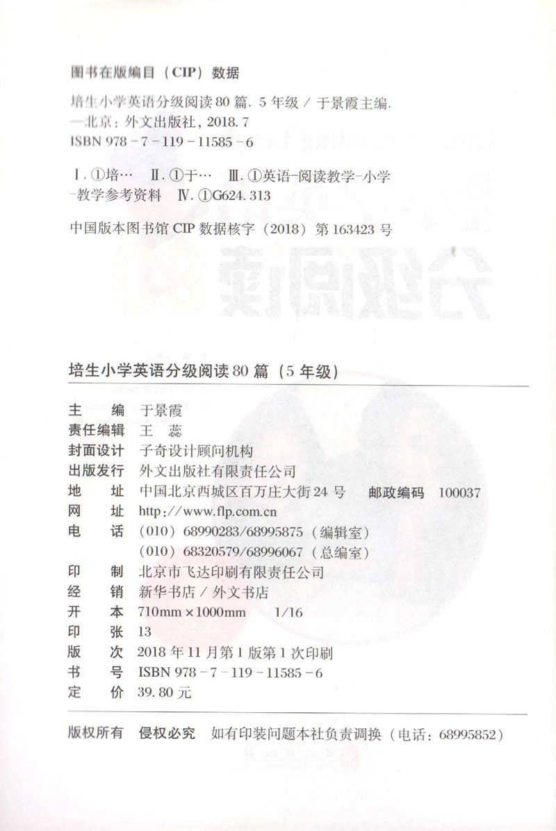 正版 培生小学英语分级阅读80篇 五年级/5年级阅读能能力六个要素 单词识别 词汇知识 词内意识与词汇发展 文本结构与理解