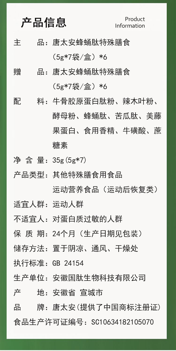 组件:唐太安蜂蛹肽35g/盒,共12盒