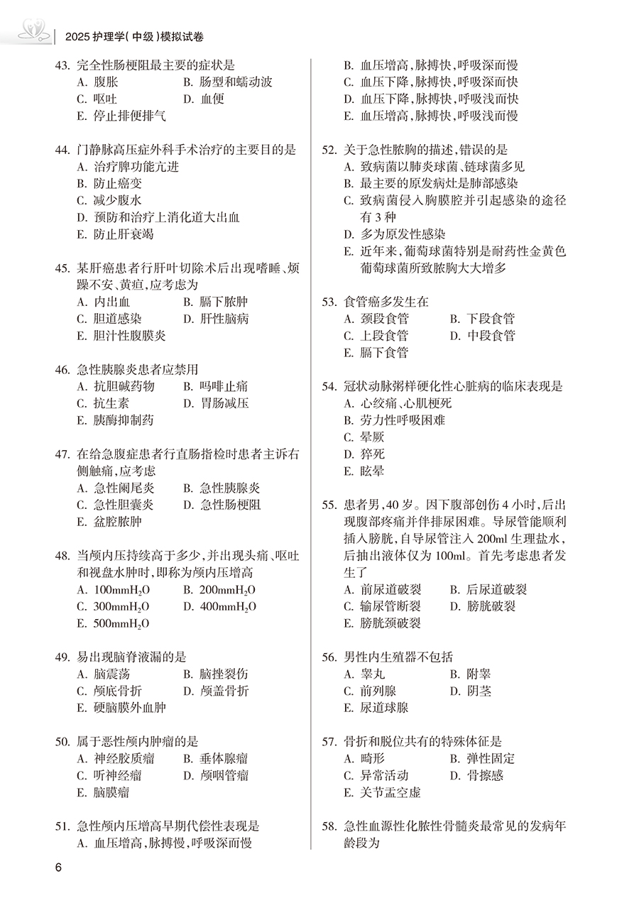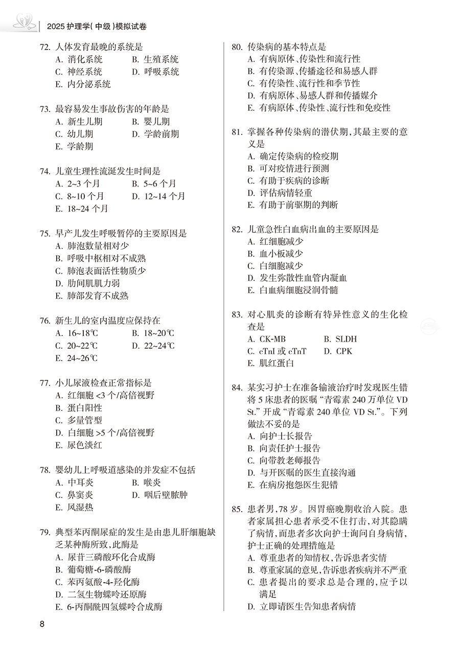 基础知识/1 模拟试卷(一)/2 模拟试卷(二)/10 模拟试卷(三)/18 相关专业知识/27 模拟试卷(一)/28 模拟试卷(二)/37 模拟试卷(三)/45 专业知识/55 护理学/56 模拟试卷(一)/56 模拟试卷(二)/65 模拟试卷(三)/74 内科护理学/84 模拟试卷(一)/84 模拟试卷(二)/94 外科护理学/104 模拟试卷(一)/104 模拟试卷(二)/113 妇产科护理学/122 模拟试卷(一)/122 模拟试卷(二)/131 儿科护理学/140 模拟试卷(一)/140 模拟试卷(二)/149 社区护理学/158 模拟试卷(一)/158 模拟试卷(二)/167 专业实践能力/177 护理学/178 模拟试卷(一)/178 模拟试卷(二)/188 模拟试卷(三)/199 内科护理学/209 模拟试卷(一)/209 模拟试卷(二)/219 外科护理学/229 模拟试卷(一)/229 模拟试卷(二)/239 妇产科护理学/250 模拟试卷(一)/250 模拟试卷(二)/261 儿科护理学/271 模拟试卷(一)/271 模拟试卷(二)/281 社区护理学/290 模拟试卷(一)/290 模拟试卷(二)/300