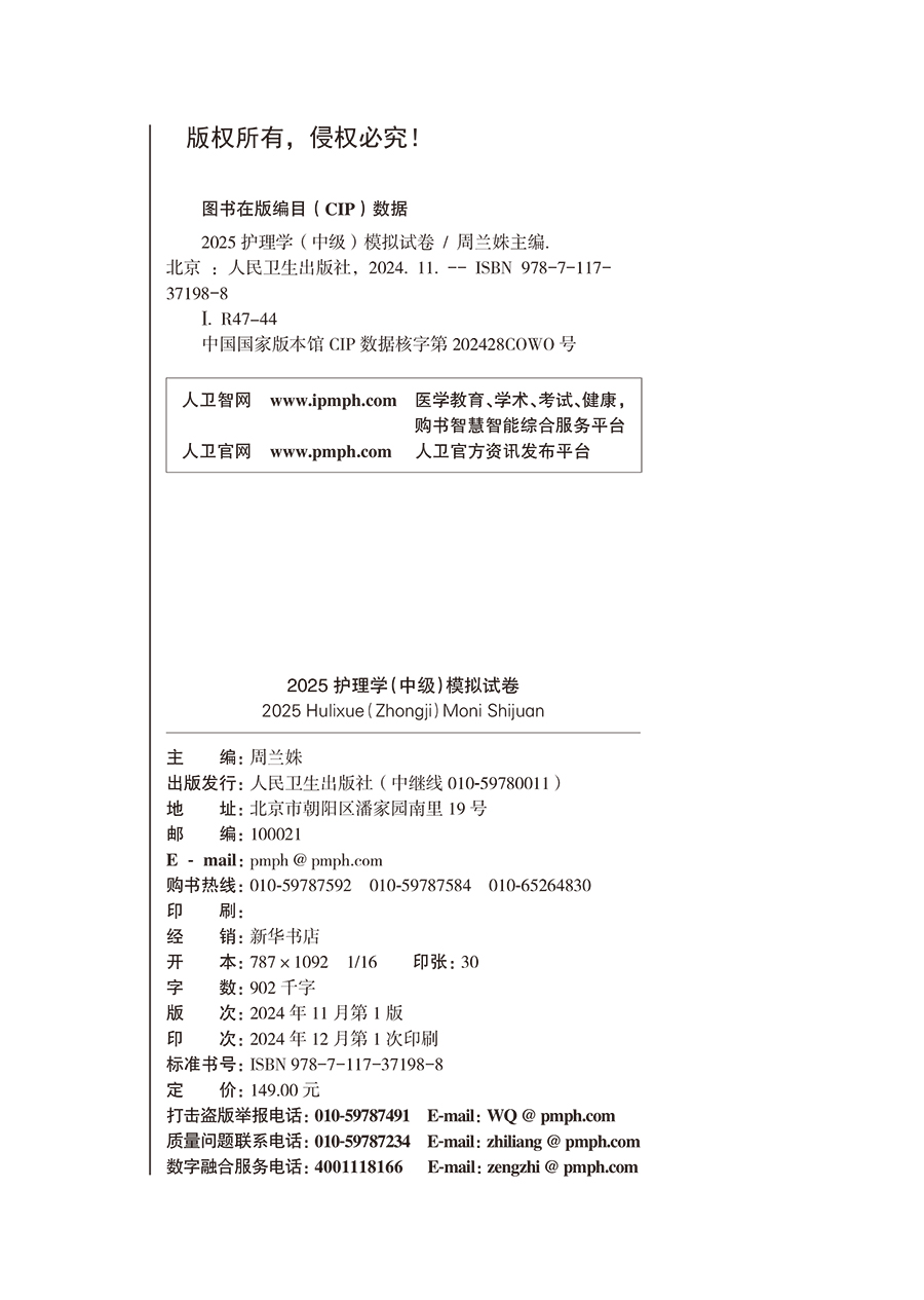 2025护理学(中级)模拟试卷 周兰姝编 全国卫生专业技术资格考试习题集丛书 适用专业护理学妇产内科儿科护理外科社区护理(中级)