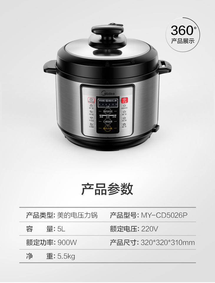 【高压锅】*美的CD5026P电压锅双胆5L智能高压锅电饭煲