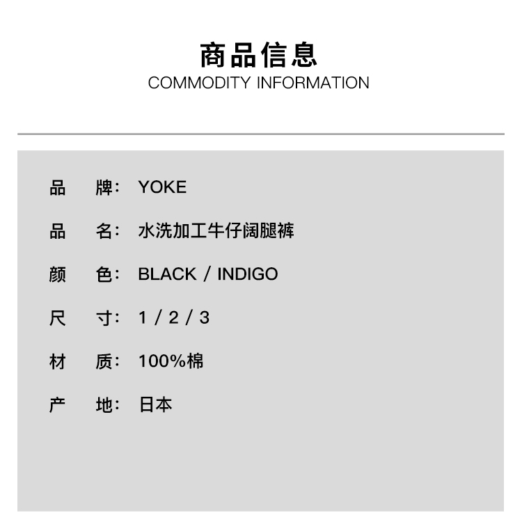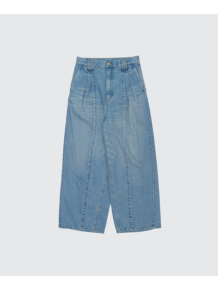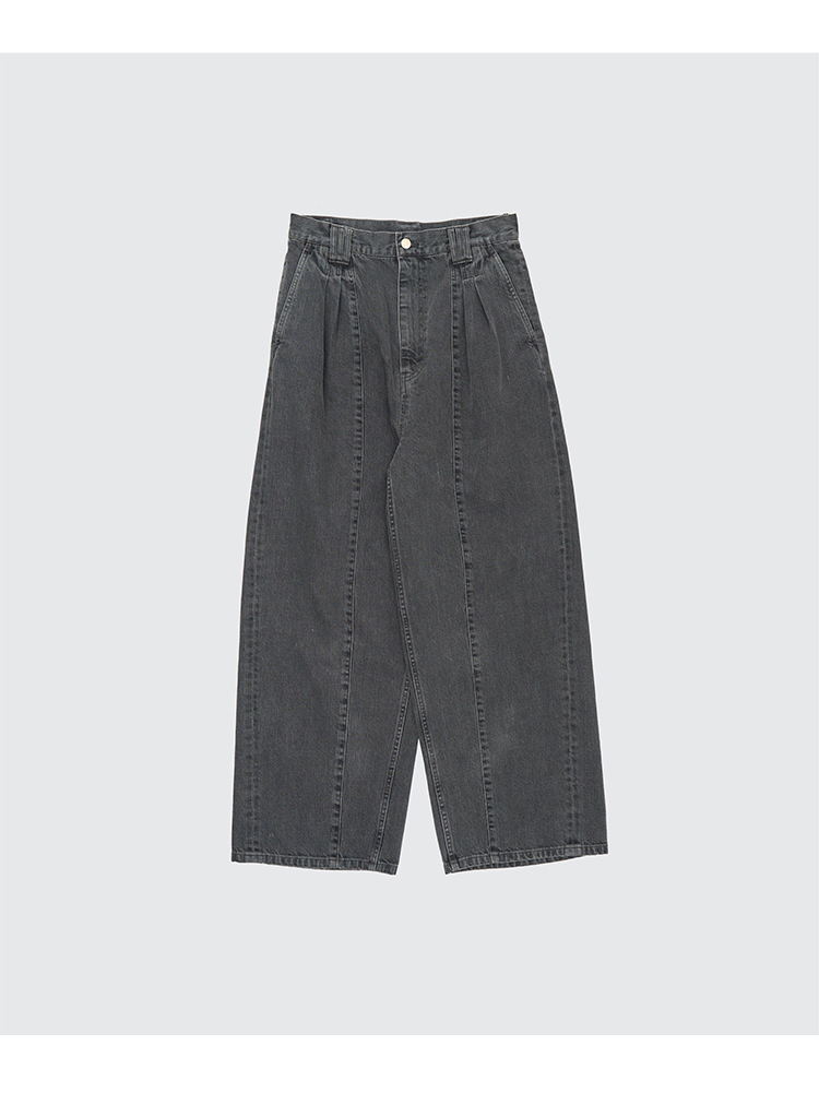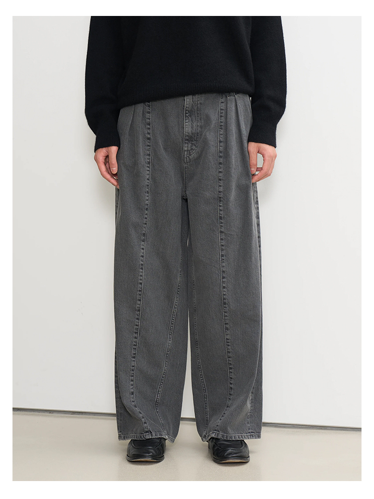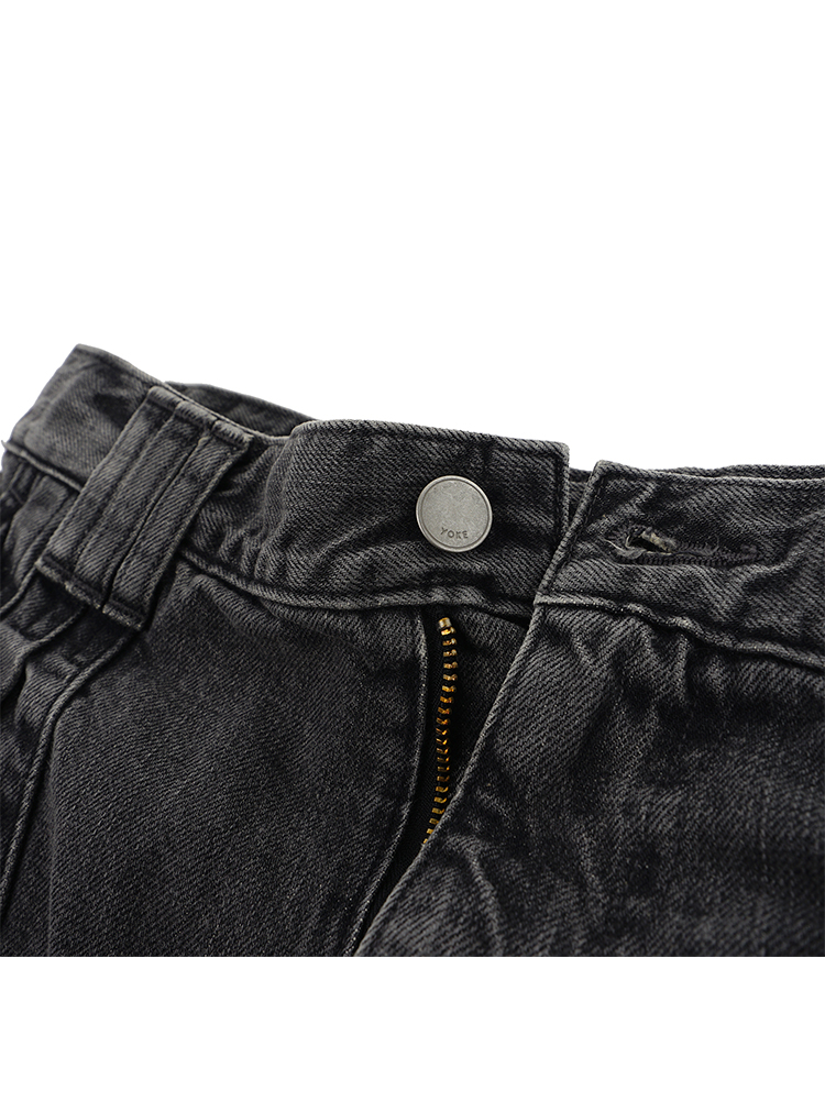 YOKE Vintaged Wash Denim 3pleated 复古水洗加工牛仔阔腿裤