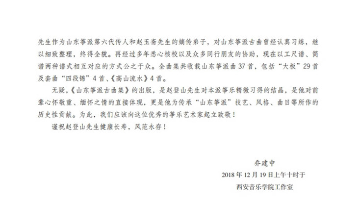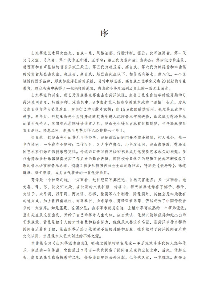 本书是赵登山先生毕生呕心沥血之作,书中包含山东筝派第四代、第五代几位大师亲传于赵登山的37首古曲,每首古曲均配有音频,由赵登山的外孙张朗华演奏,以“扫码听”的形式呈现。本书是目前所见唯一一本工尺谱与简谱对照的山东筝派曲集正式出版物,对山东古筝流派的传承、发展具有重要意义。
