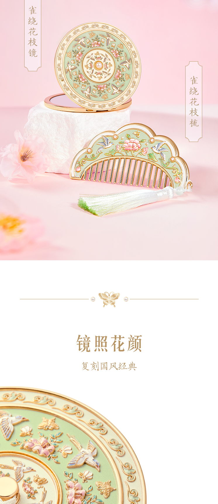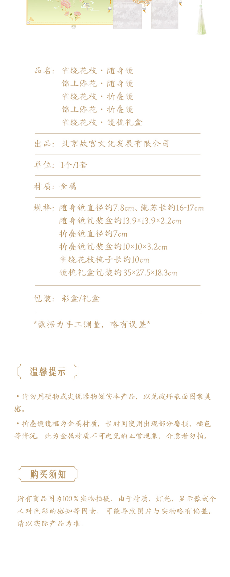 【故宫镜子】锦上添花雀绕花枝镜子随身镜手持化妆镜
