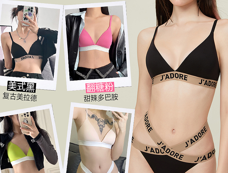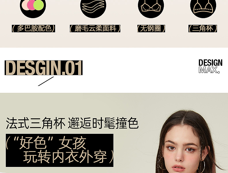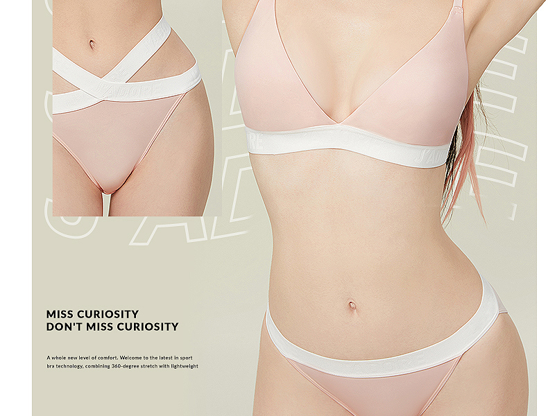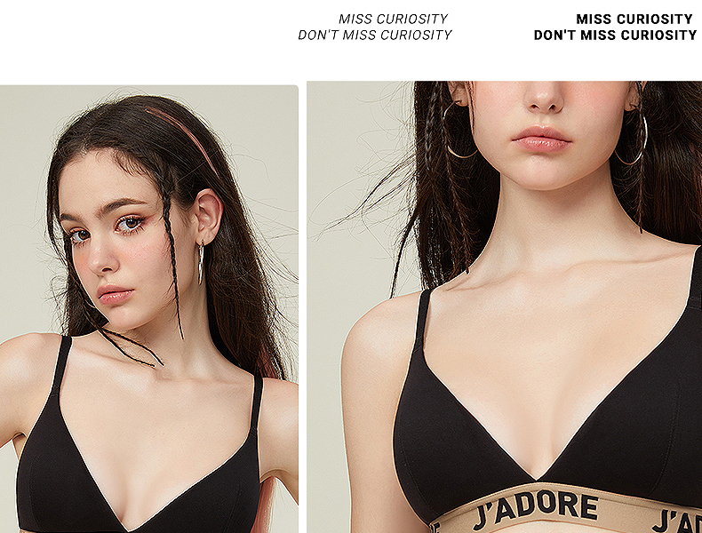 好奇蜜斯法式内衣女三角杯无痕无钢圈夏季文胸罩套装薄款大胸显小 麦可思