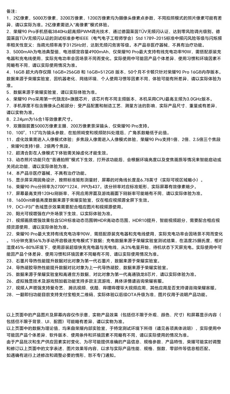 荣耀90 Pro 6.78英寸 2亿像素写真相机 双卡 全网通