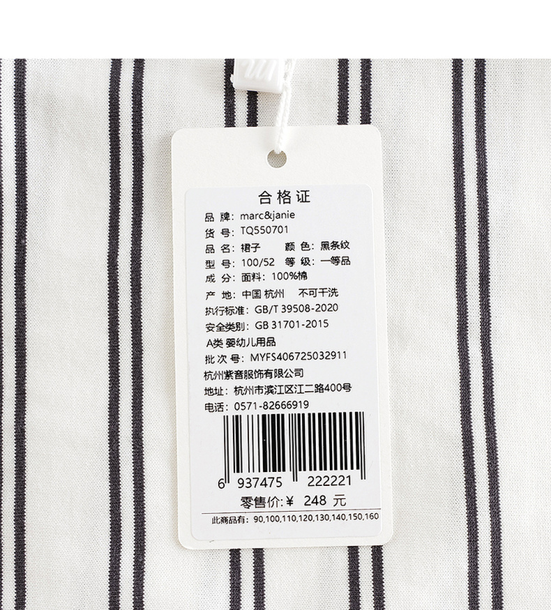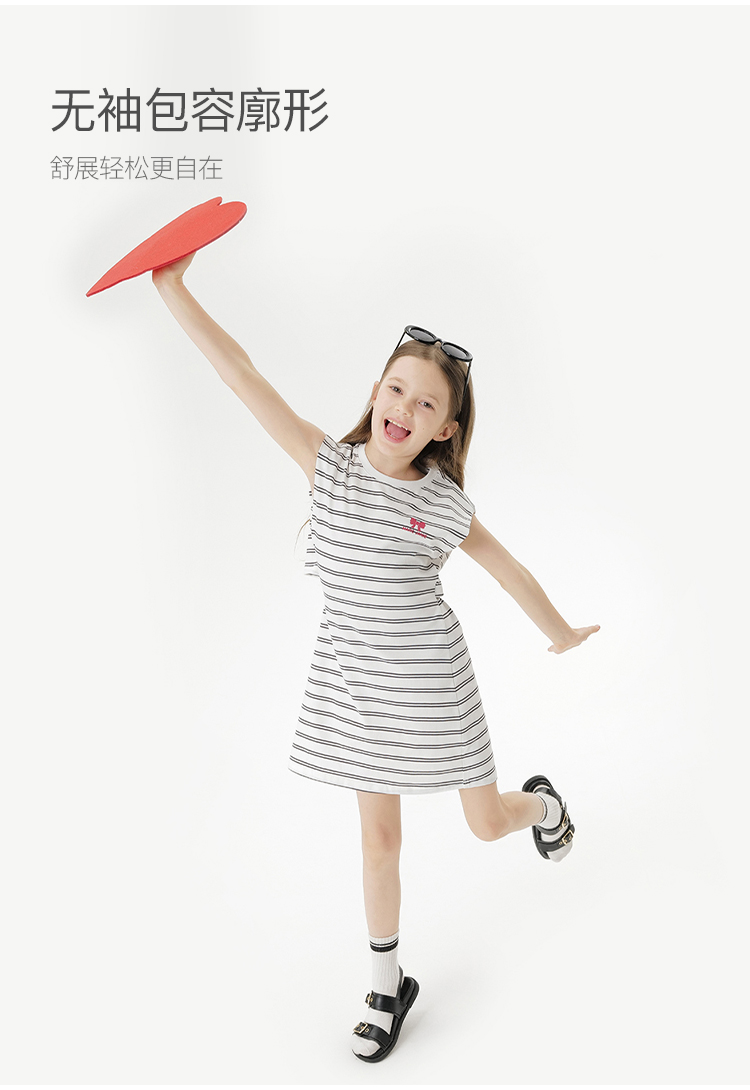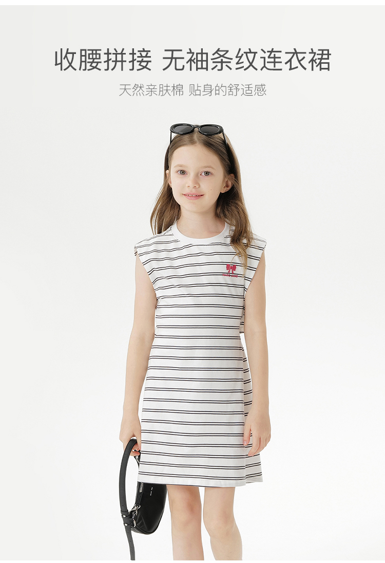 马克珍妮女童条纹收腰拼接连衣裙 儿童裙子2025年夏装新款550701