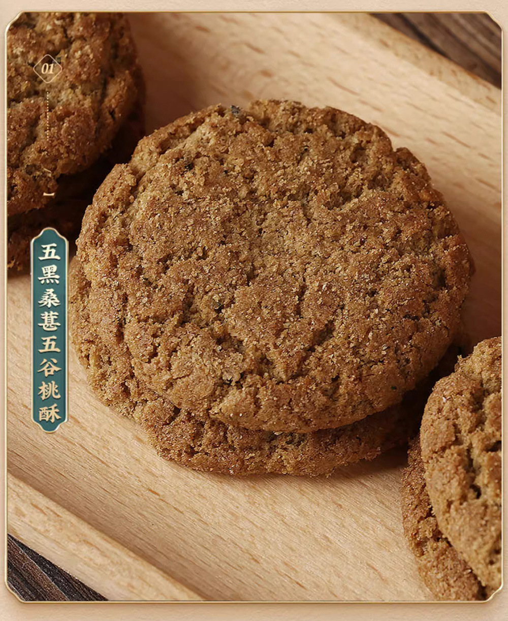 【2盒装】五黑桑葚五谷桃酥木糖醇糖人饼干糕点零食、休闲零食,400g/盒