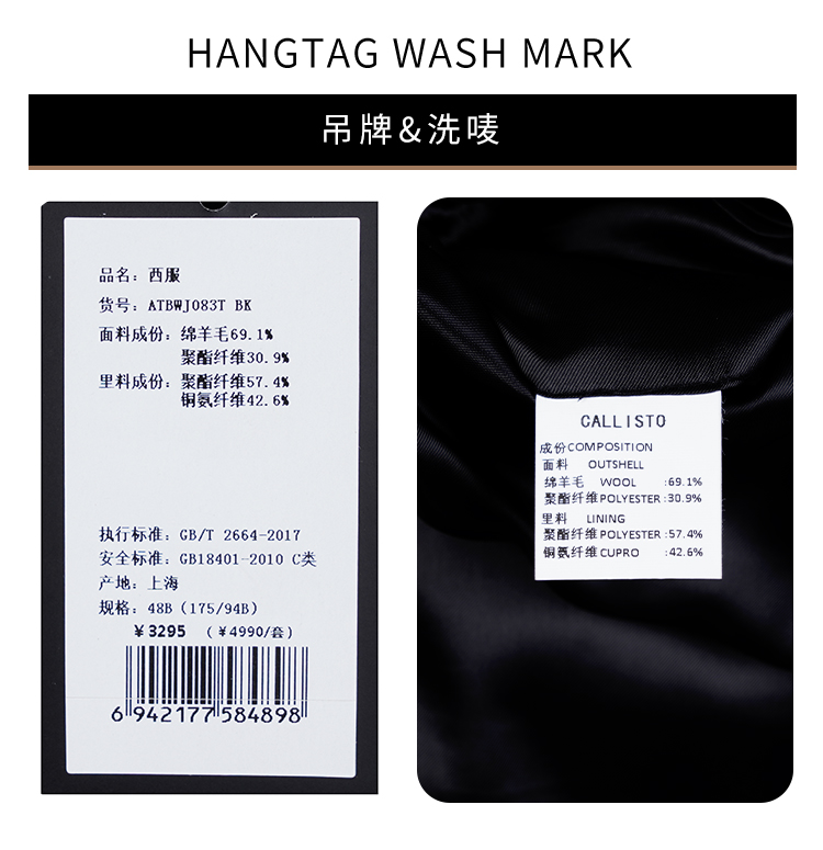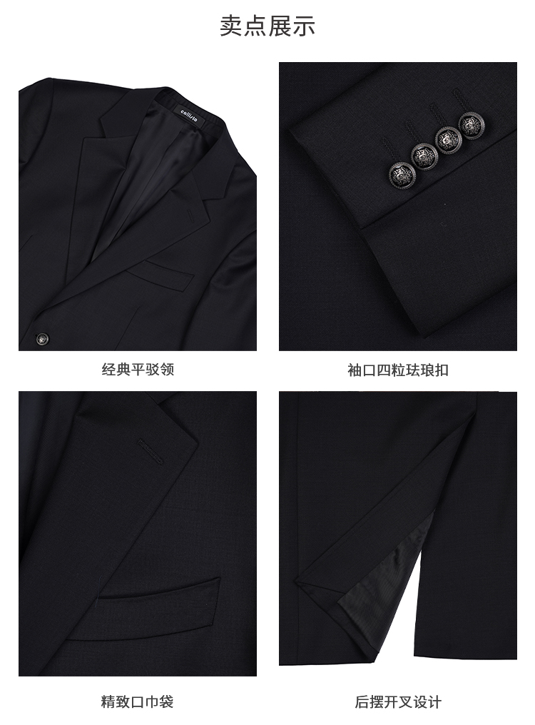 callisto黑色绵羊毛混纺西服