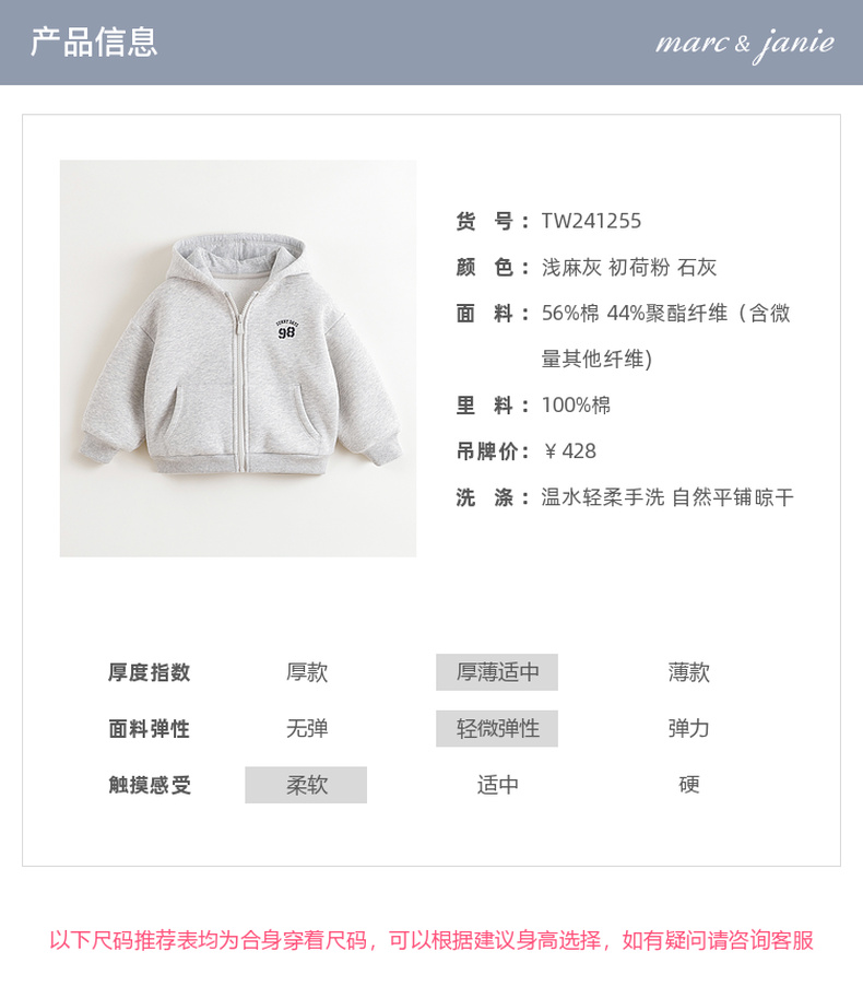 【抗静电】马克珍妮女童元气学院加绒外套2024年秋冬新款241255