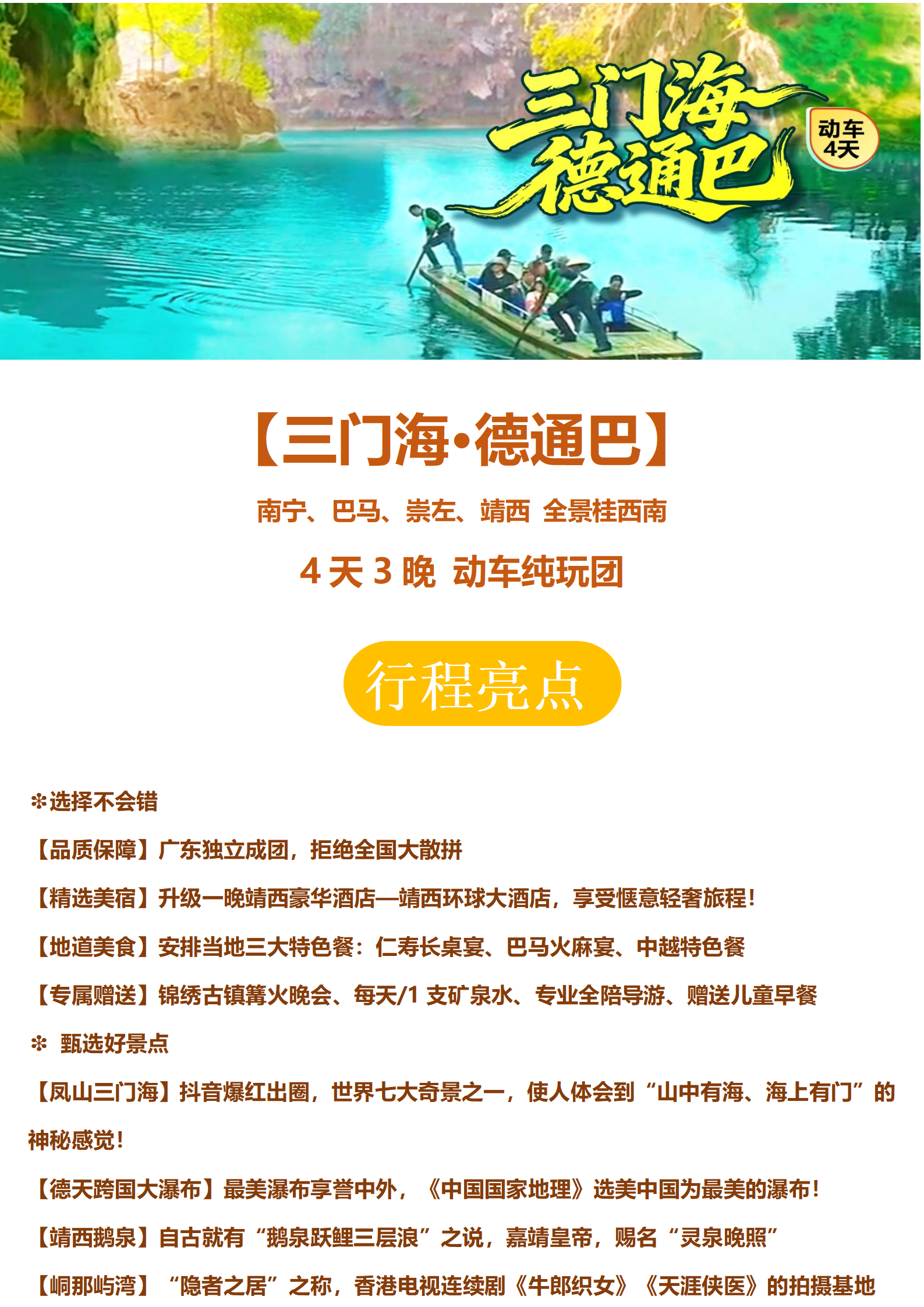 【三门海·德通巴】南宁、巴马、崇左、靖西 全景桂西南4天3晚 动车纯玩团