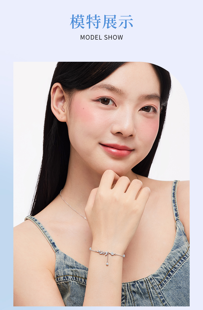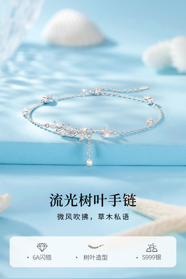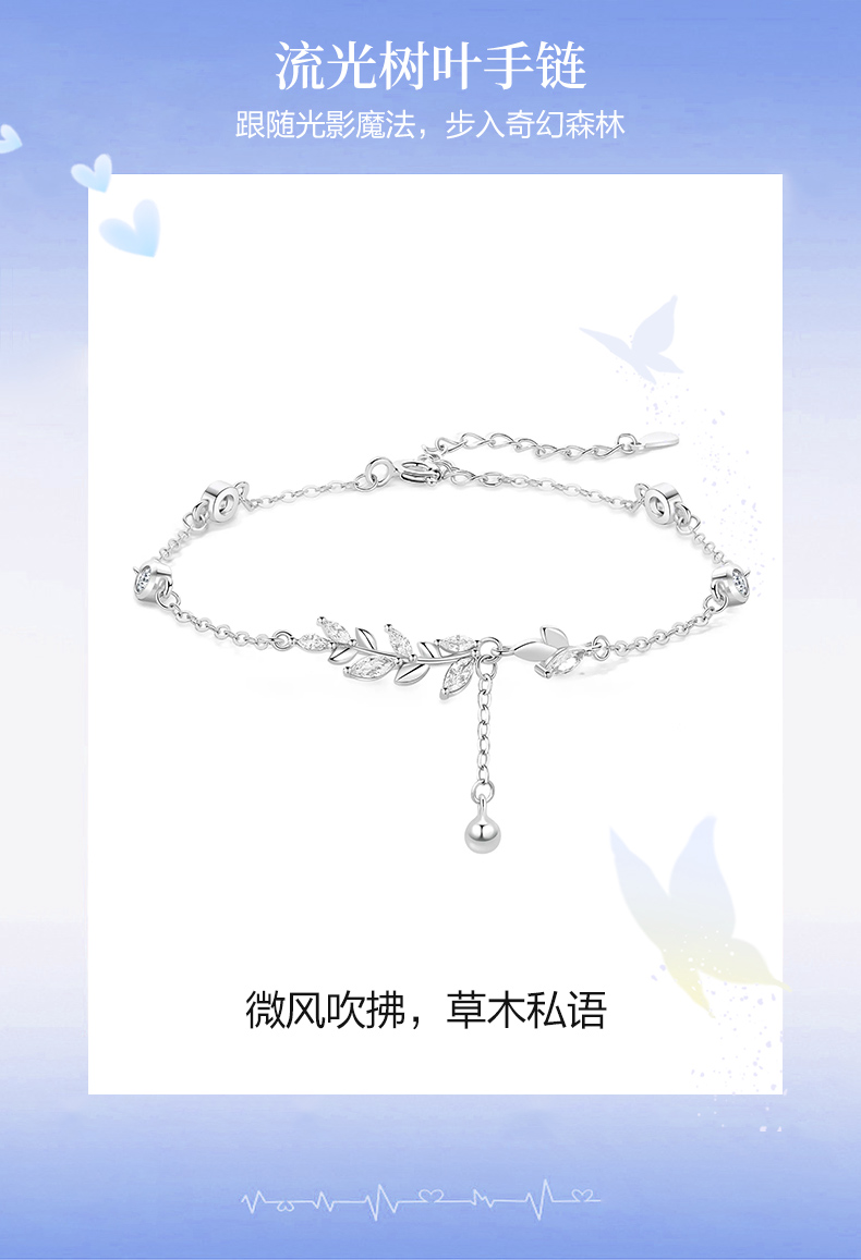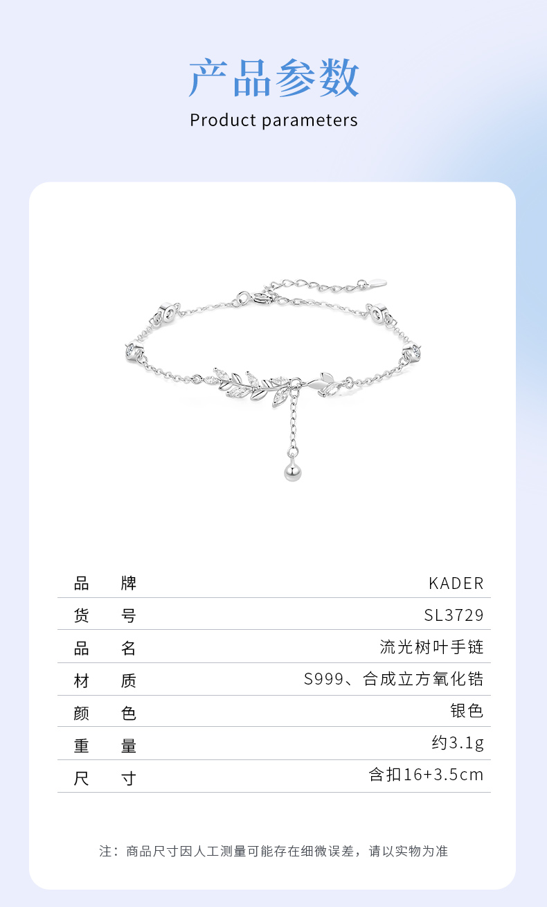 卡蒂罗/KADER 流光树叶穗穗平安手链 新中式时尚麦穗精致闪耀小众轻奢设计经典气质款流苏可调节满钻拼接链 女友
