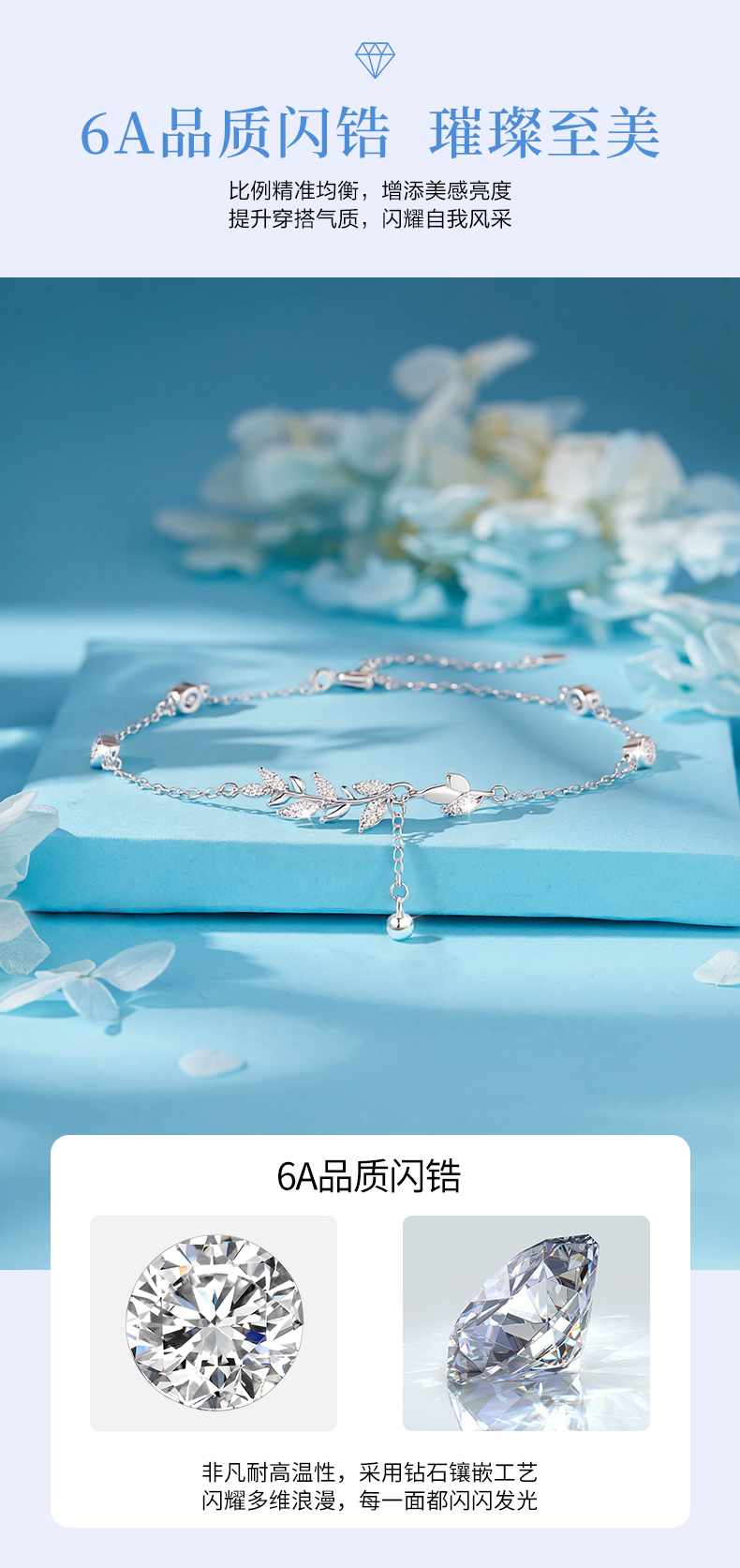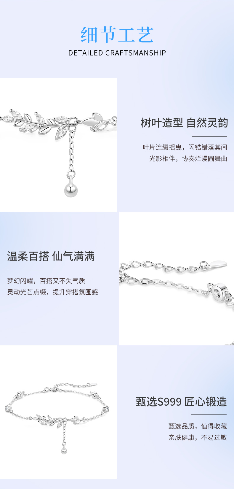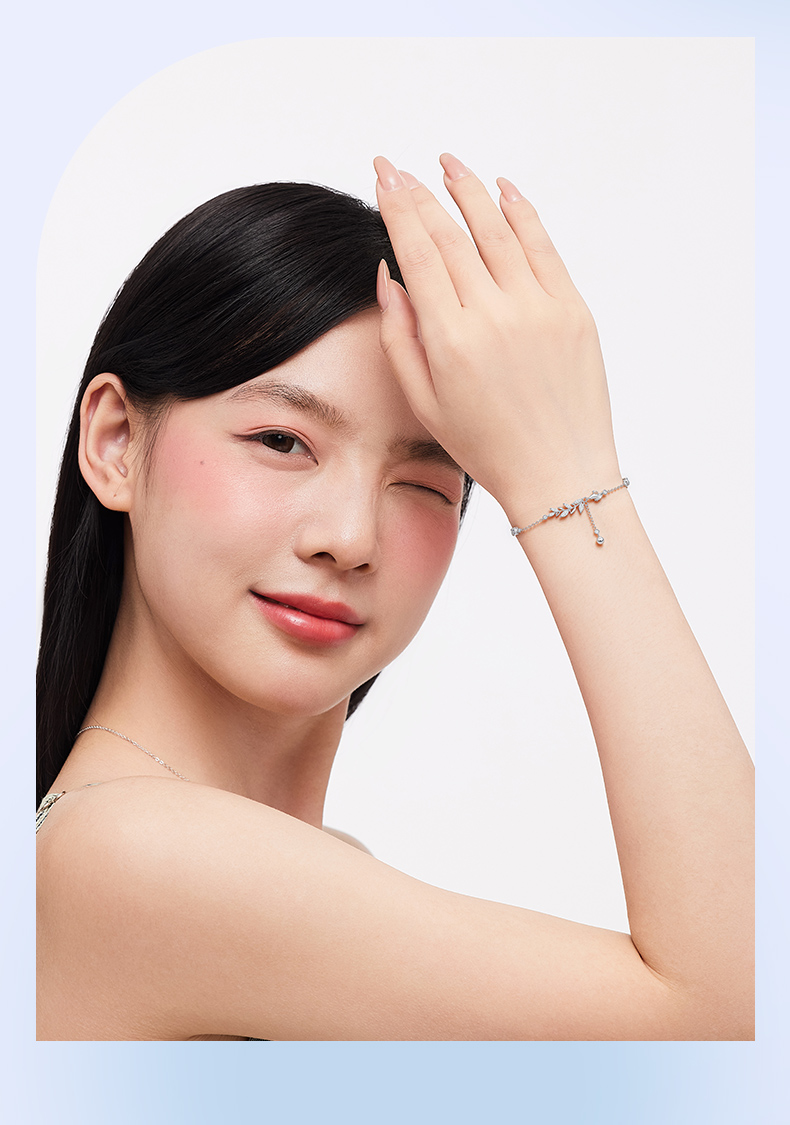 卡蒂罗/KADER 流光树叶穗穗平安手链 新中式时尚麦穗精致闪耀小众轻奢设计经典气质款流苏可调节满钻拼接链 女友