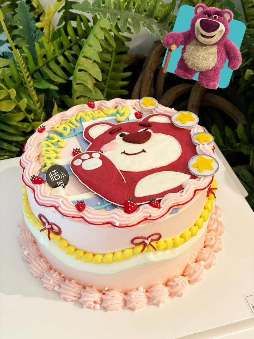 草莓熊生日手绘蛋糕,开开心心“莓烦恼”
