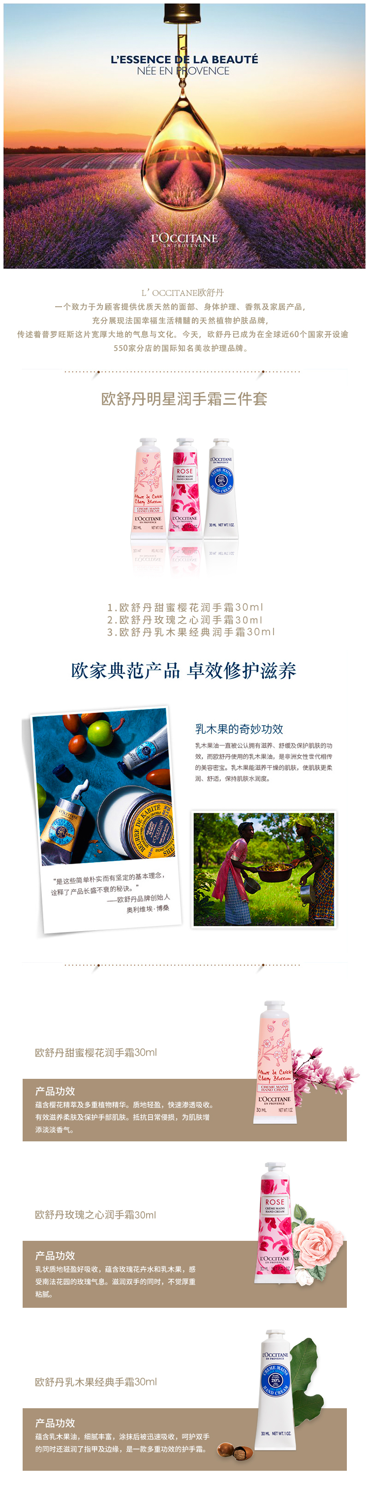欧舒丹 经典手霜黄色礼盒3件装(樱花润手霜30ml+乳木果经典润手霜30ml+玫瑰之心润手霜30ml)