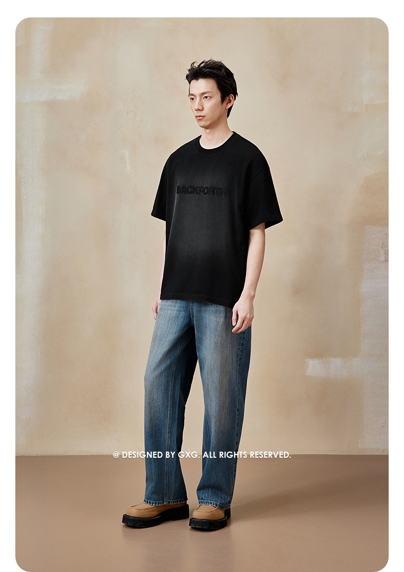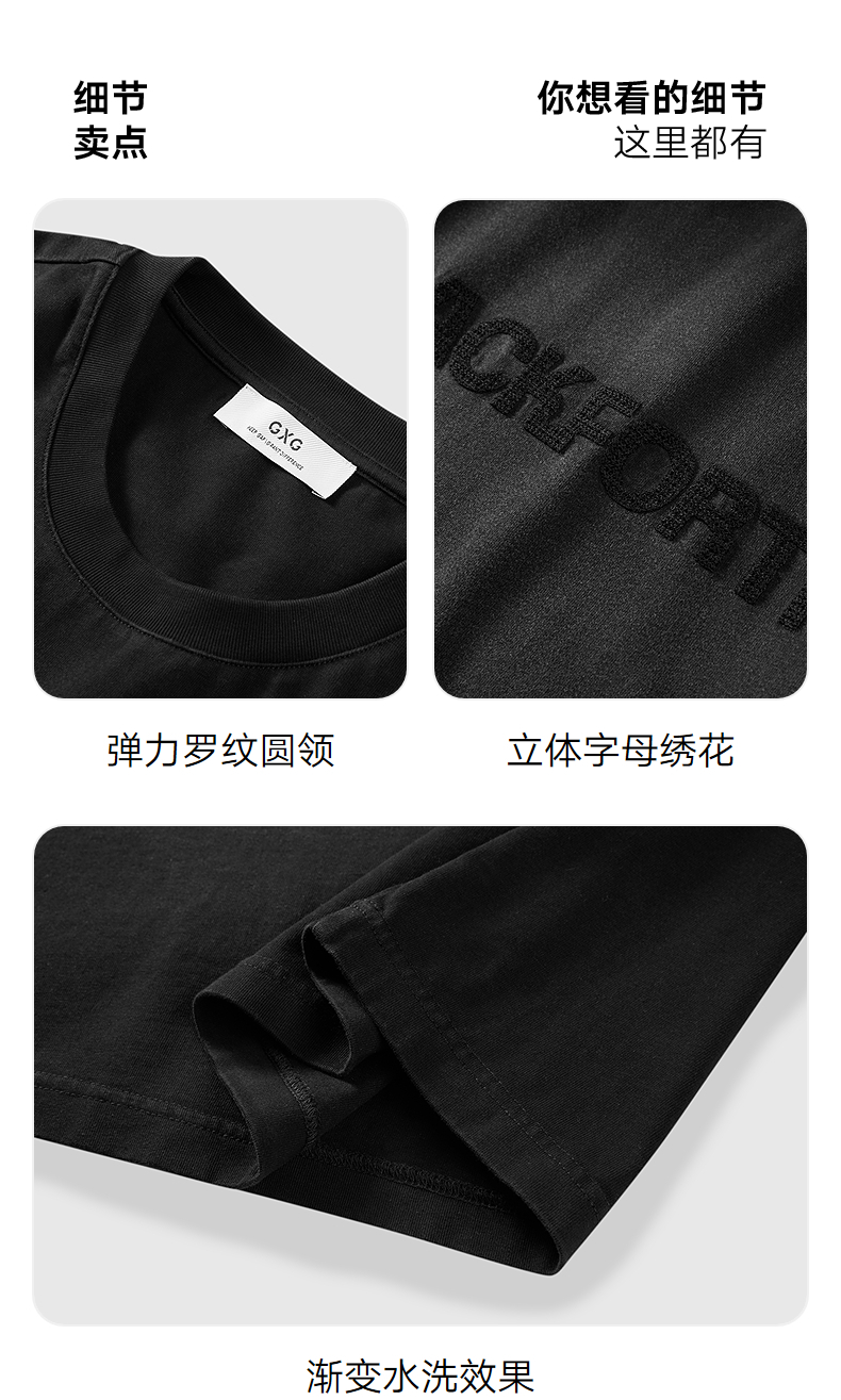GXG男装 黑色宽松潮流短袖T恤 简约休闲好搭短袖夏季热卖G24X442037
