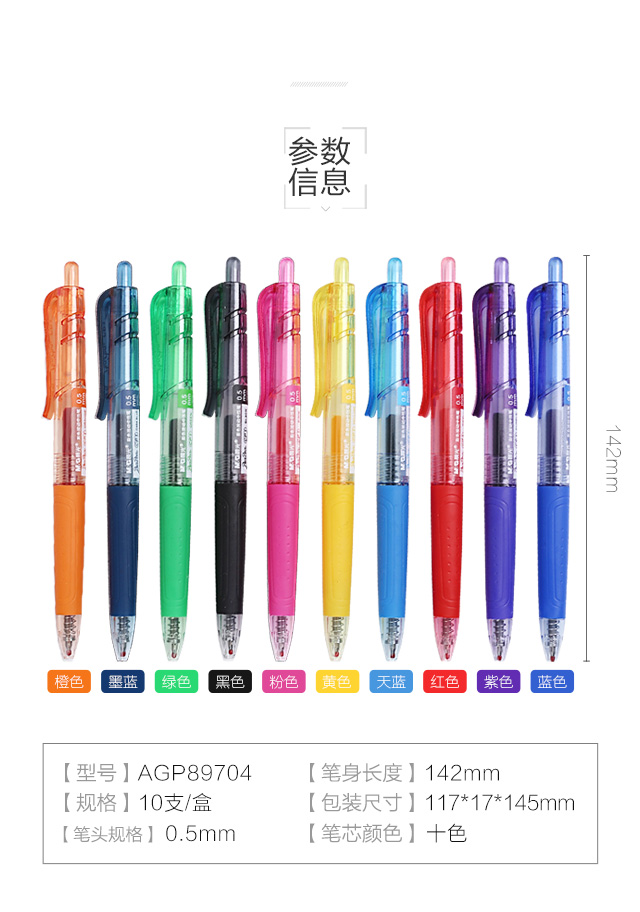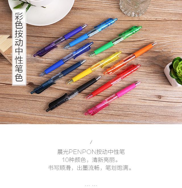 晨光(M&G)文具0.5mm彩色中性笔 按动签字笔 PENPON水笔多色手账笔水笔 10支/盒AGP89704