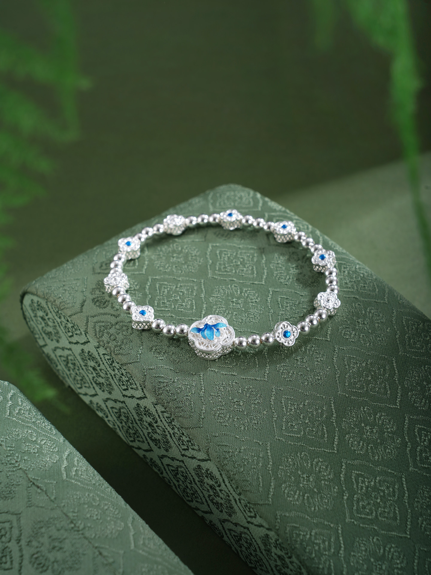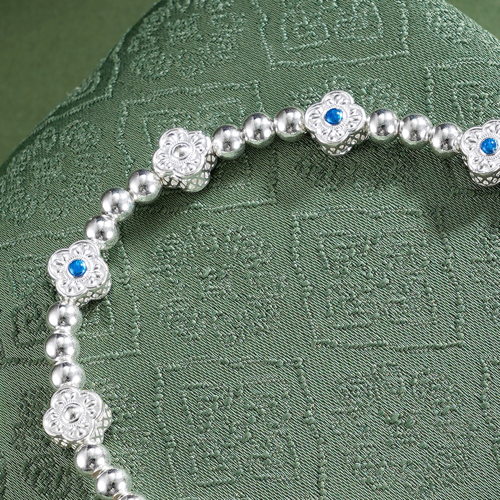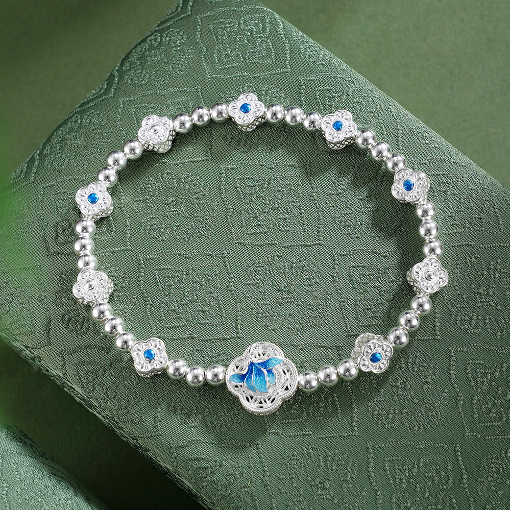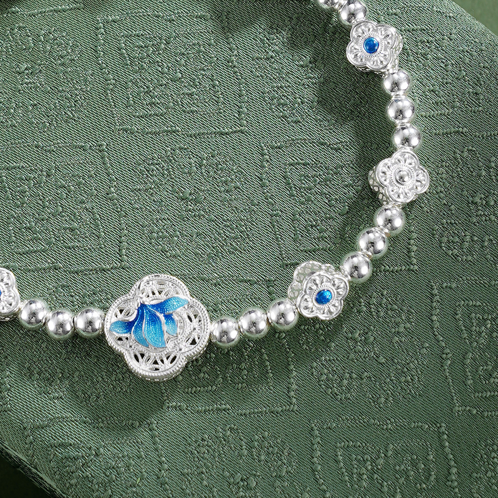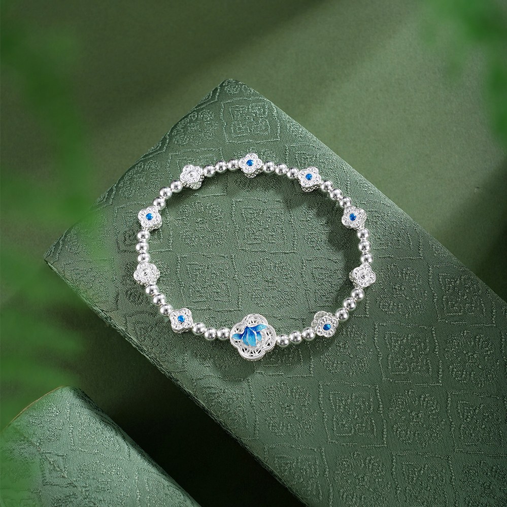 子佩集【轩畔玉兰】银S990手串手链【QFSL024】原创作品花丝珐琅彩玉兰莲2602
