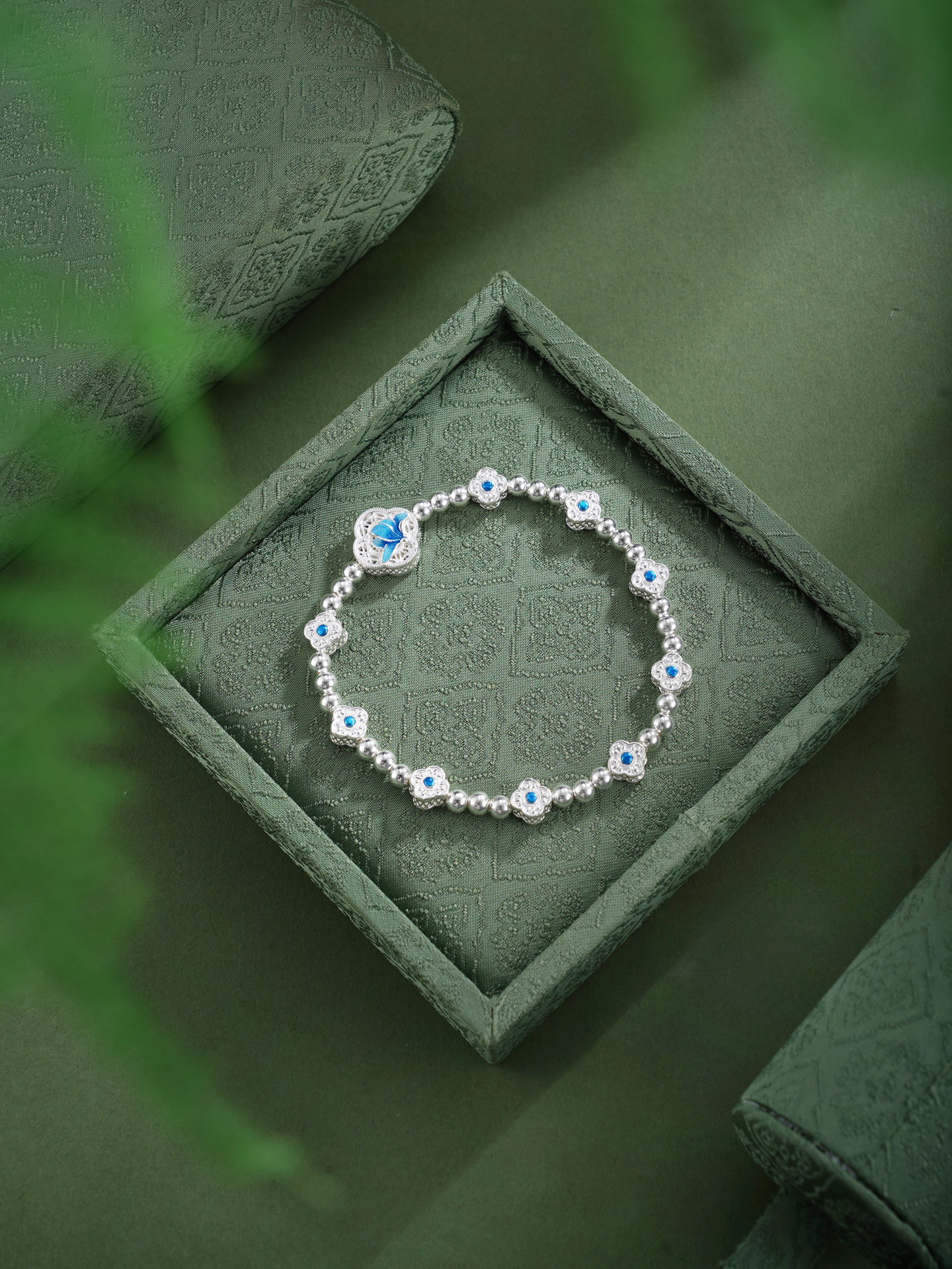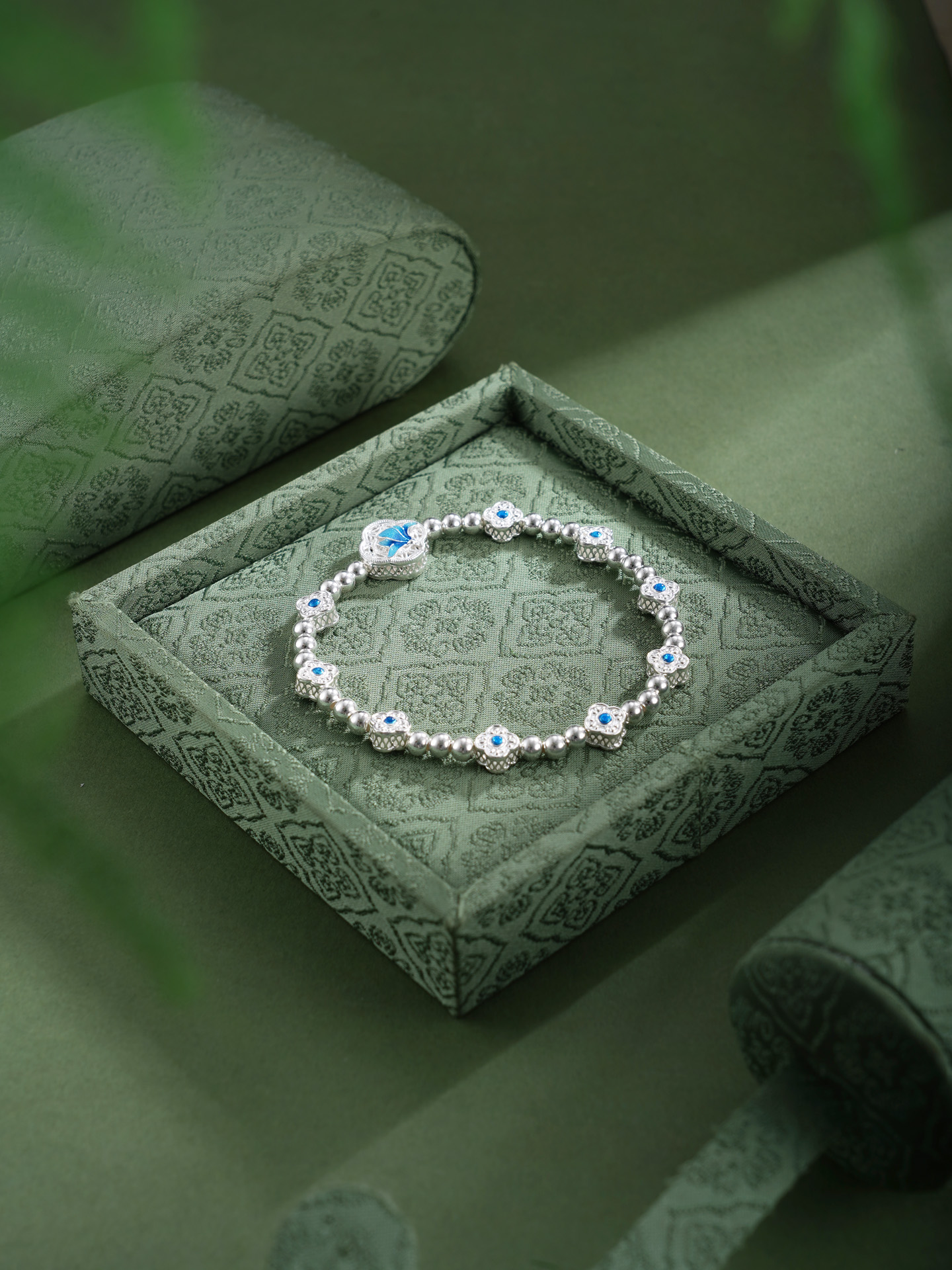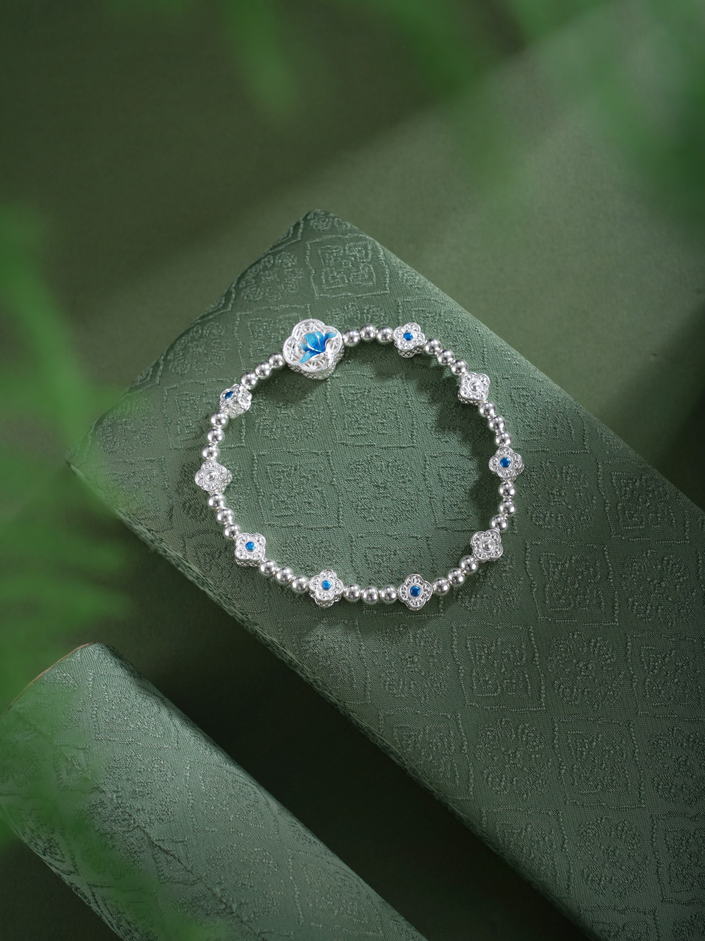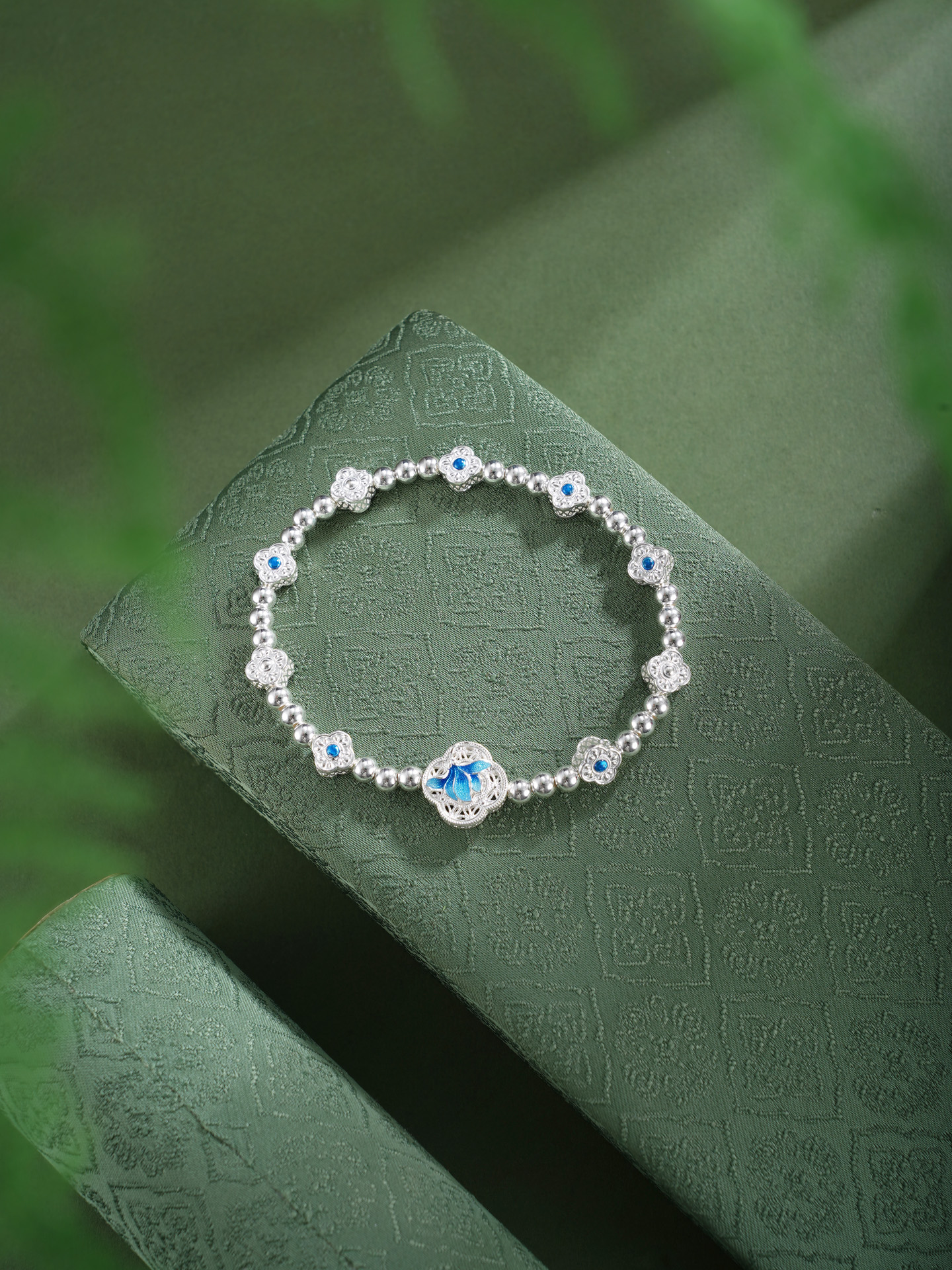 子佩集【轩畔玉兰】银S990手串手链【QFSL024】原创作品花丝珐琅彩玉兰莲2602