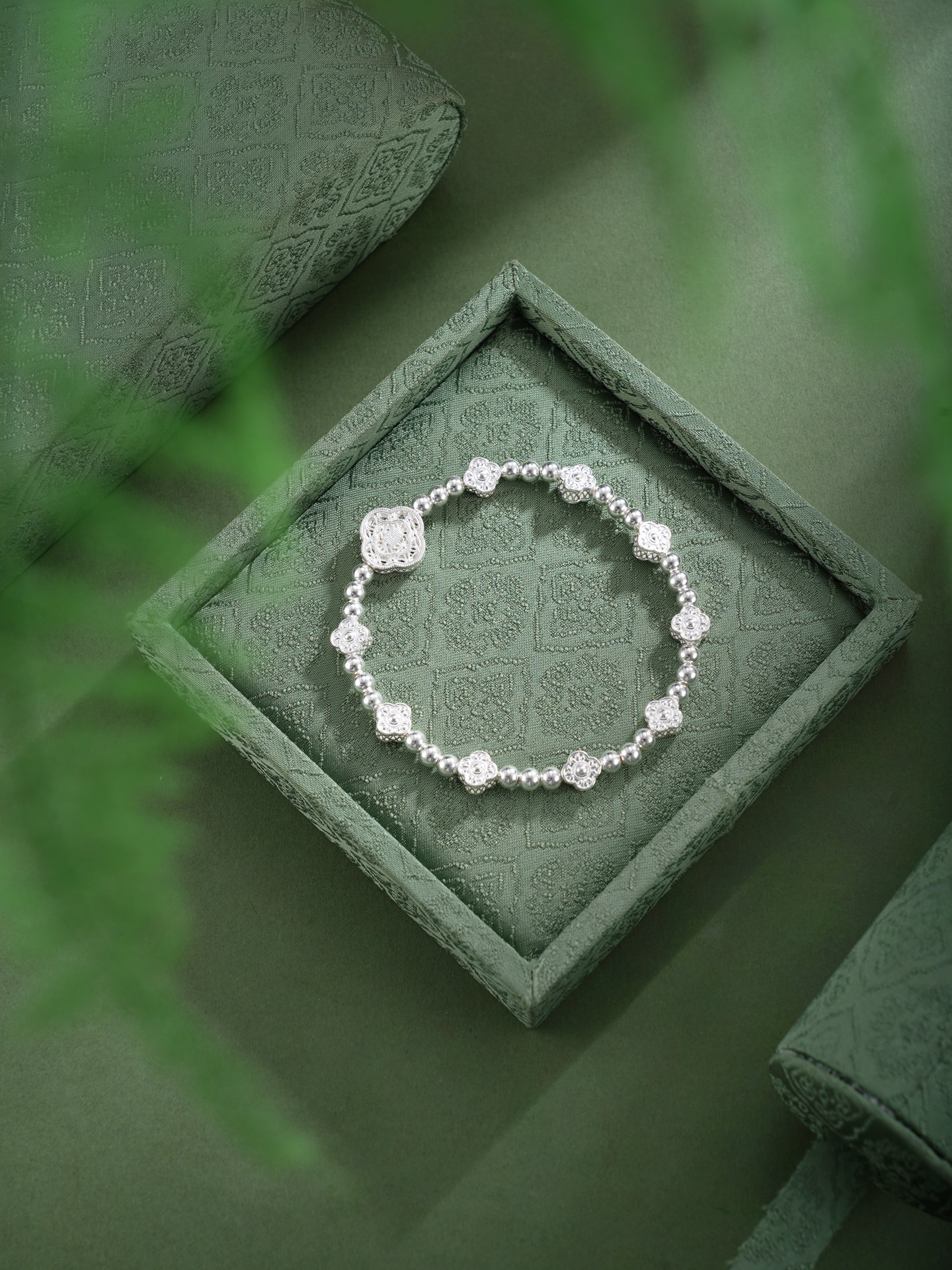 【寓意】:作品由子佩集原创设计,采用国家级非遗银花丝工艺,选用990纯银材质打造。设计灵感源自东方园林的四叶轩窗,将玉兰花的清雅风姿与坚韧品格凝练于作品造型之中,以镂空工艺寄寓“窗含四季,福泽绵长”的美好愿景,传递东方生活美学中的从容与诗意。