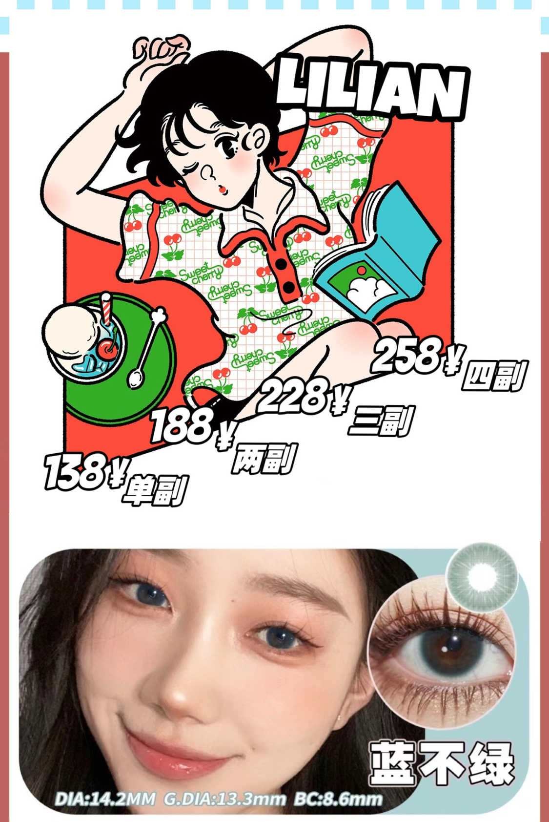 【小红书推荐款】lilian 灰不蓝 /年抛/直径14.5/着色13.8,128/副178/两副218/三副248/四副