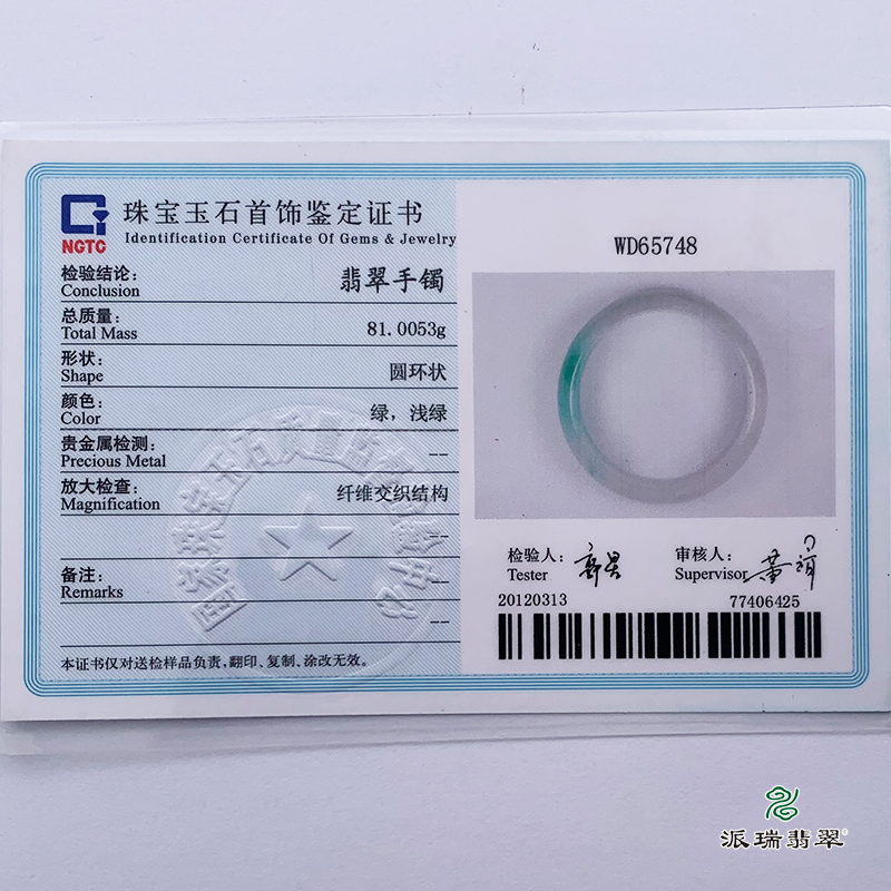 派瑞翡翠 翡翠手镯 糯种 浅绿
