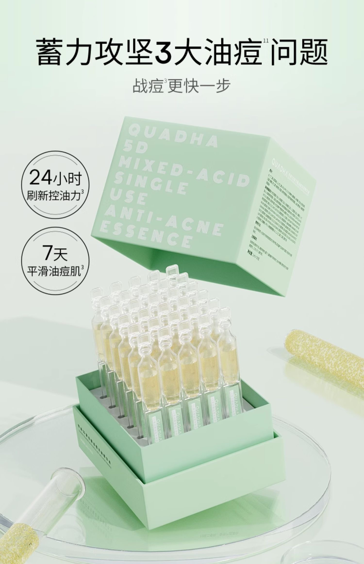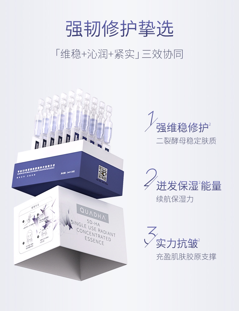 华熙生物夸迪5D玻尿酸悬油/蓝抛/粉抛/白抛次抛屏障修护舒缓精华 30支