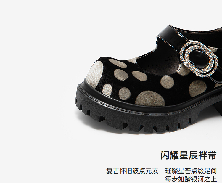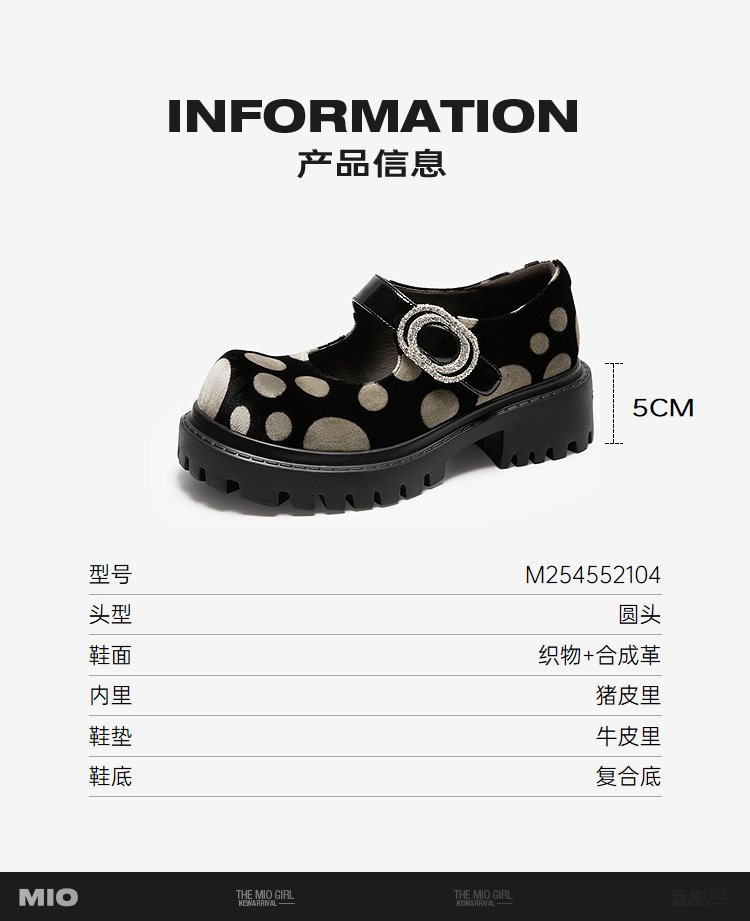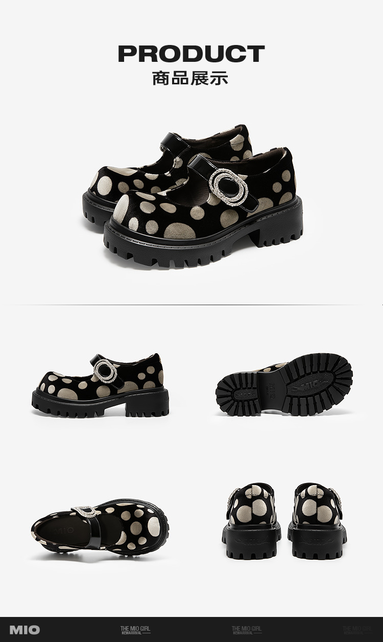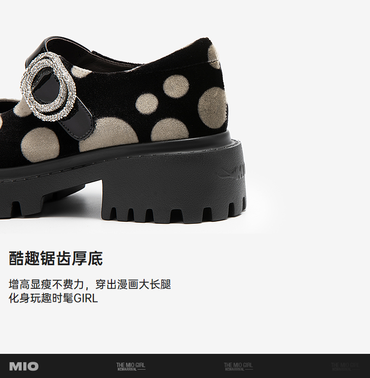 MIO米奥玛丽珍鞋时尚波点魔术贴厚底增高5cm单鞋女M254552104