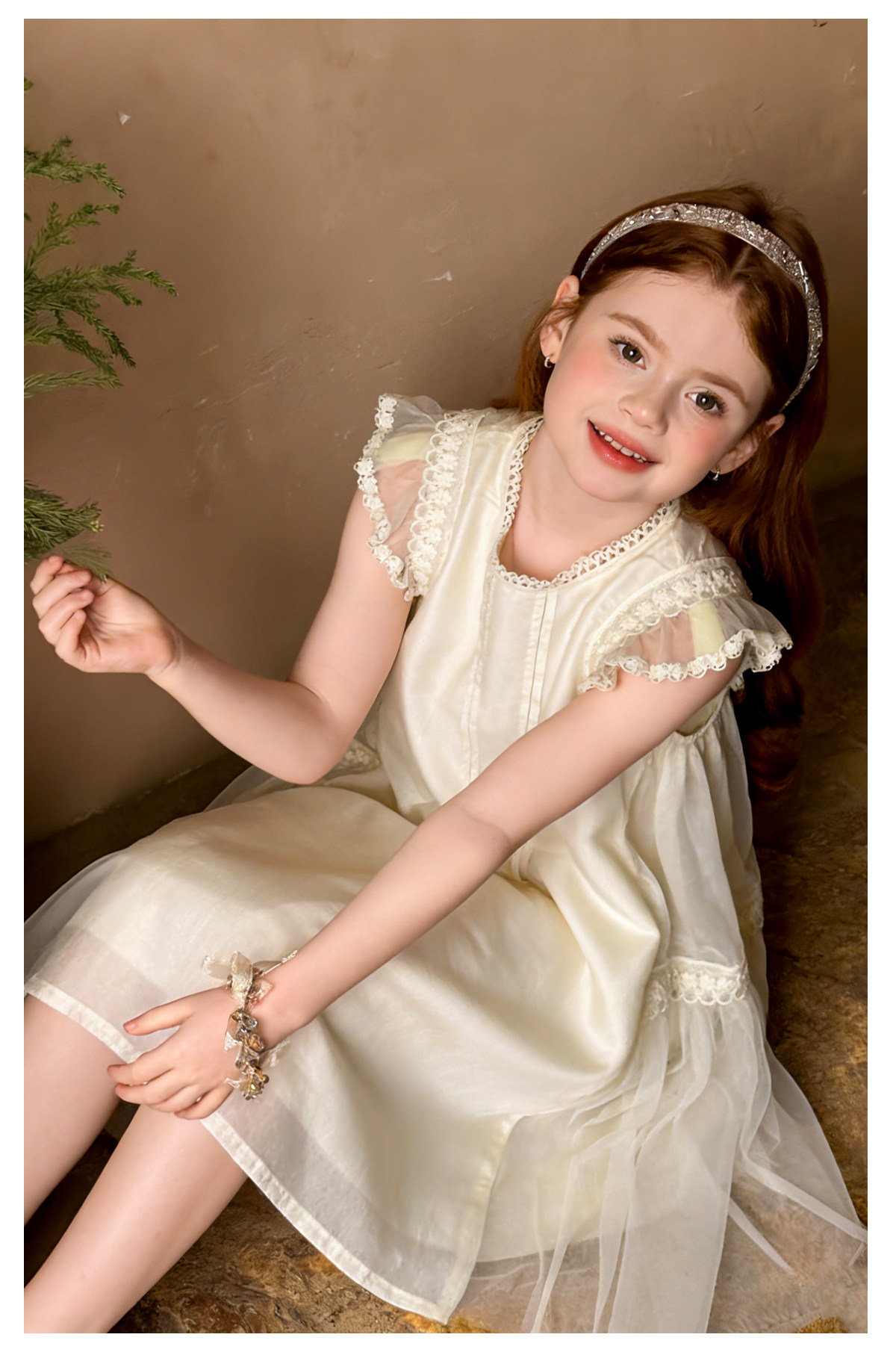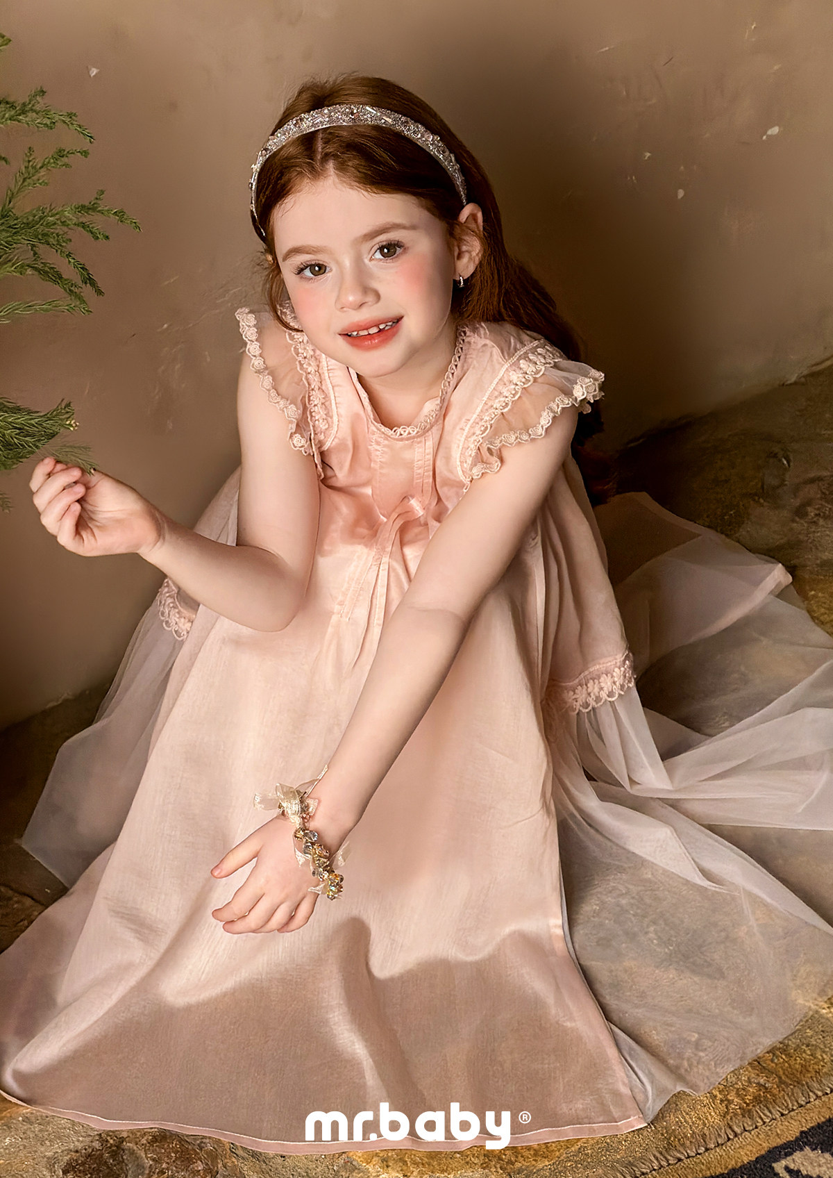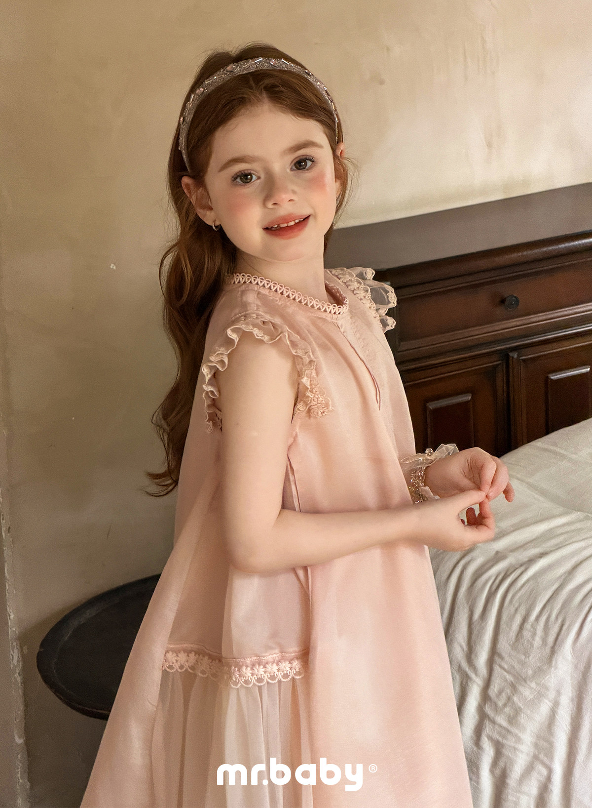 mr.baby26春夏女童甜美飞飞袖蕾丝花边天丝莱赛尔连衣裙公主裙