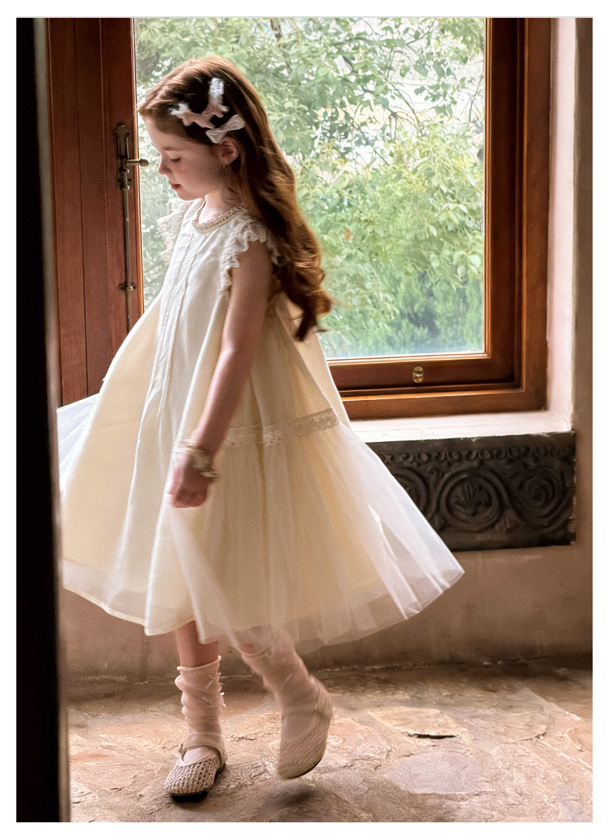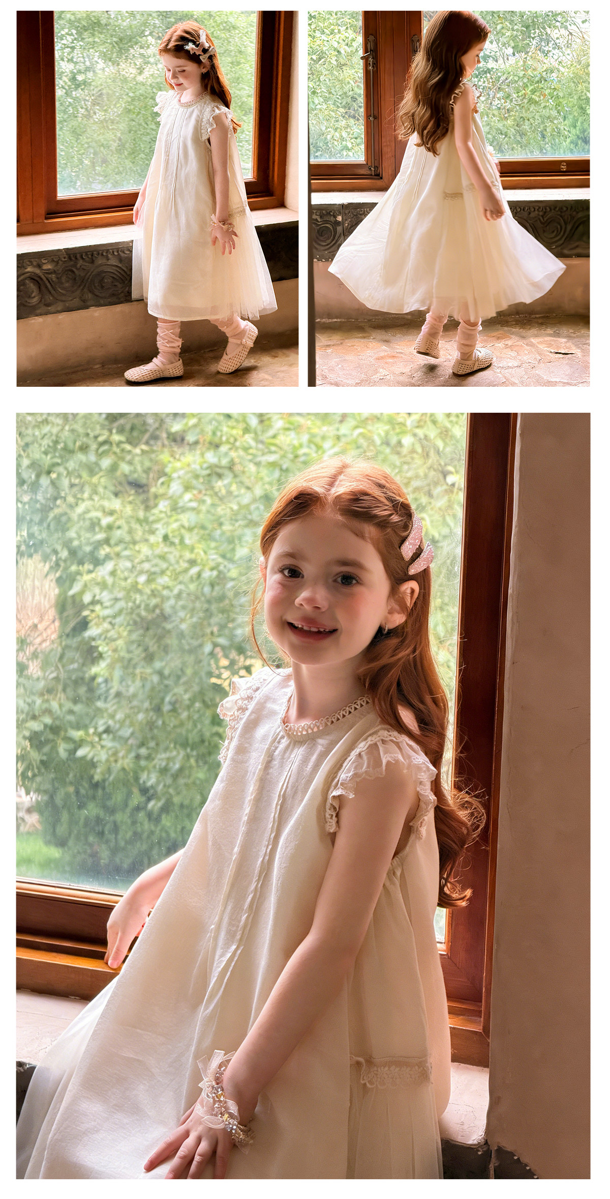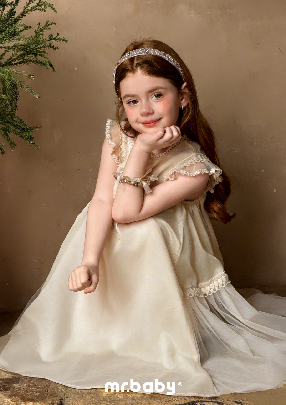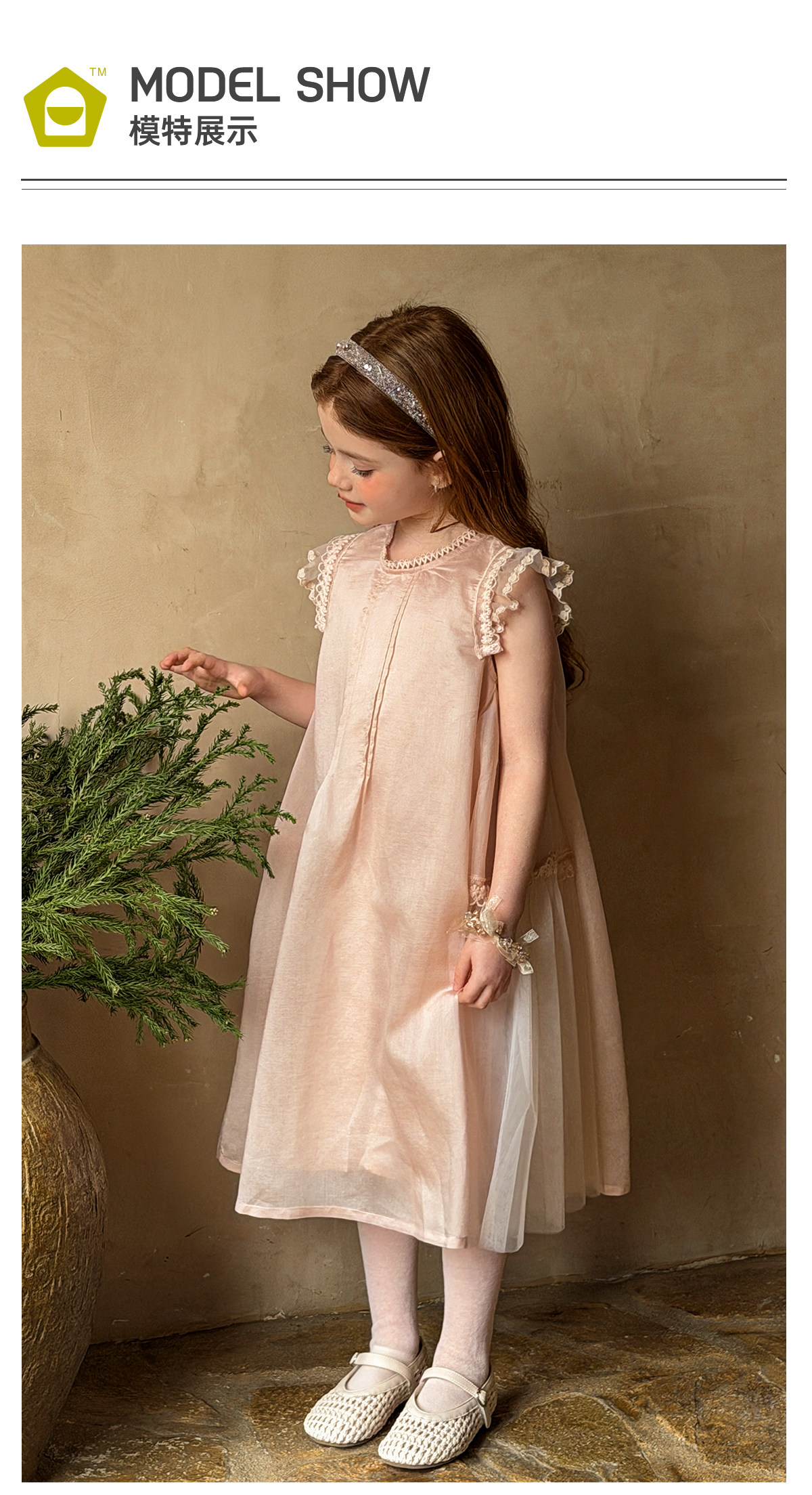 mr.baby26春夏女童甜美飞飞袖蕾丝花边天丝莱赛尔连衣裙公主裙