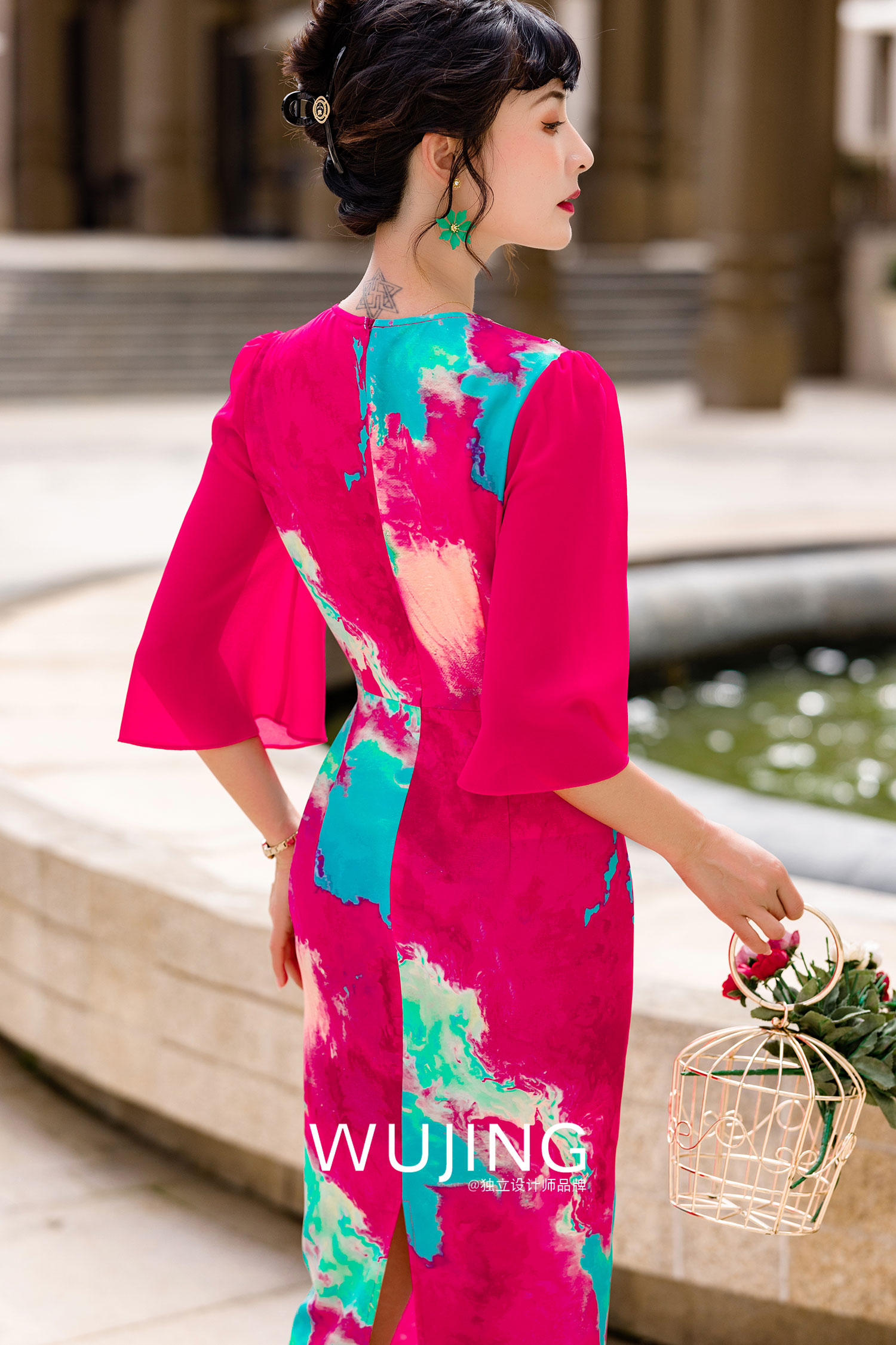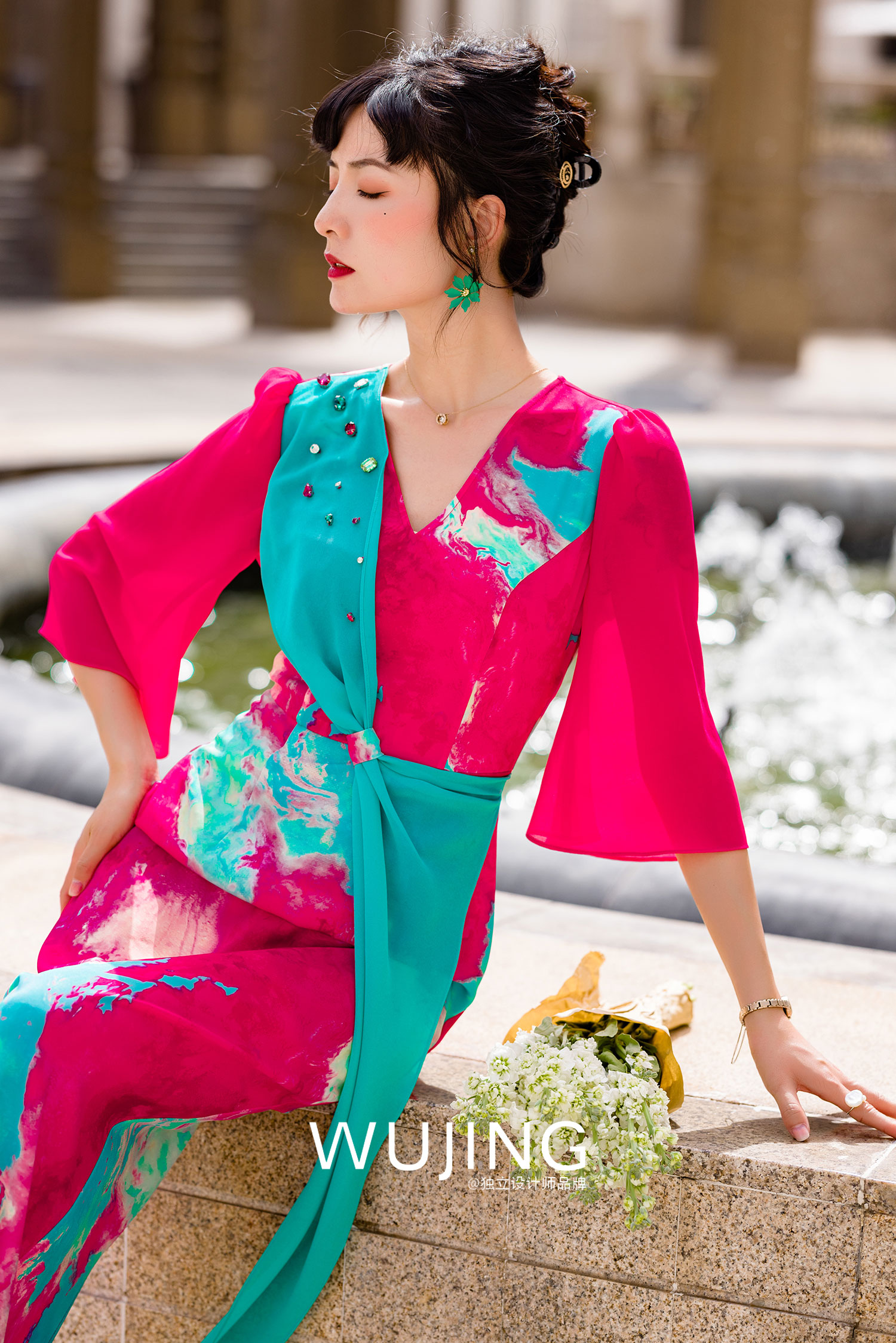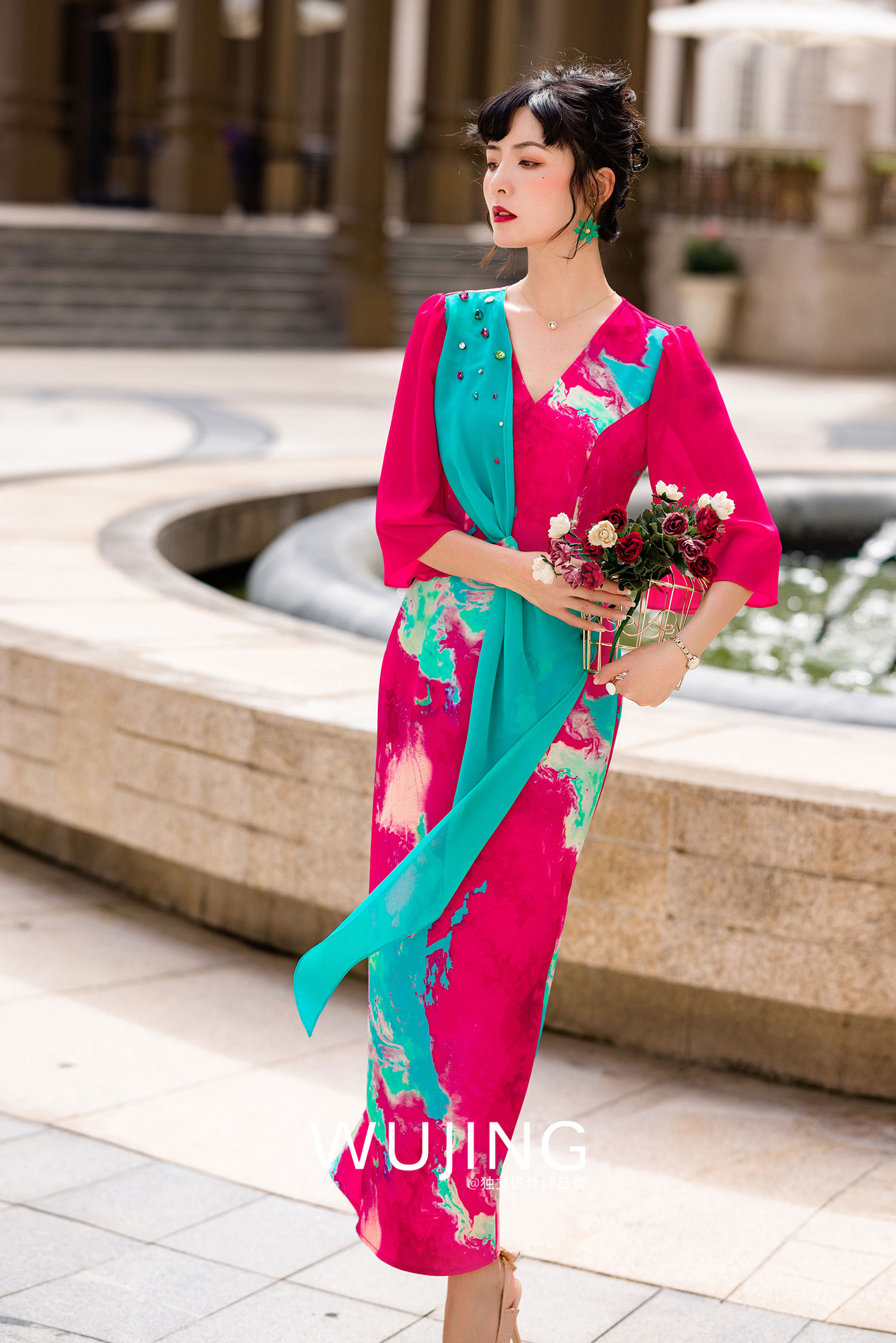 3022092 海棠醉日 树莓红连衣裙 雾境