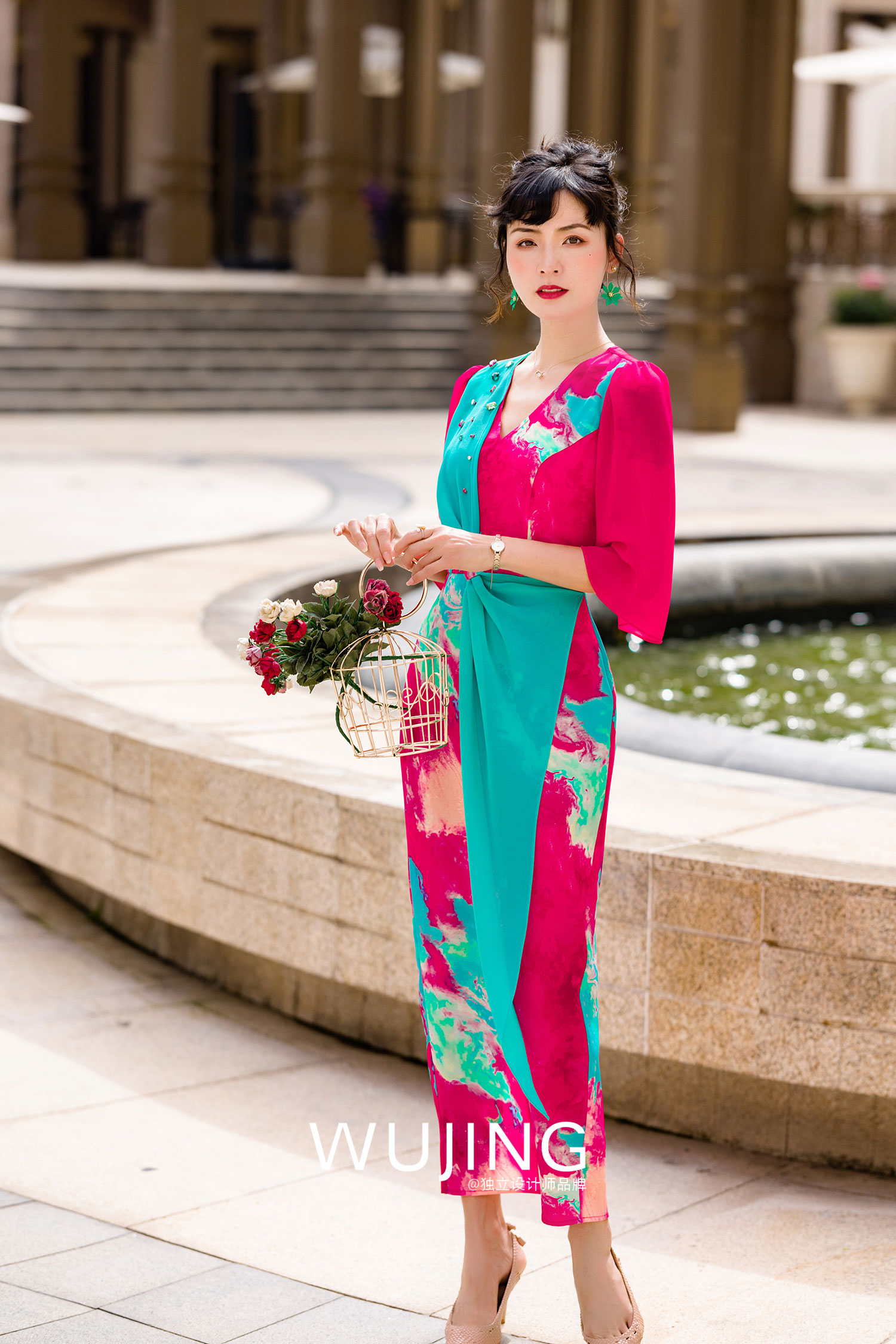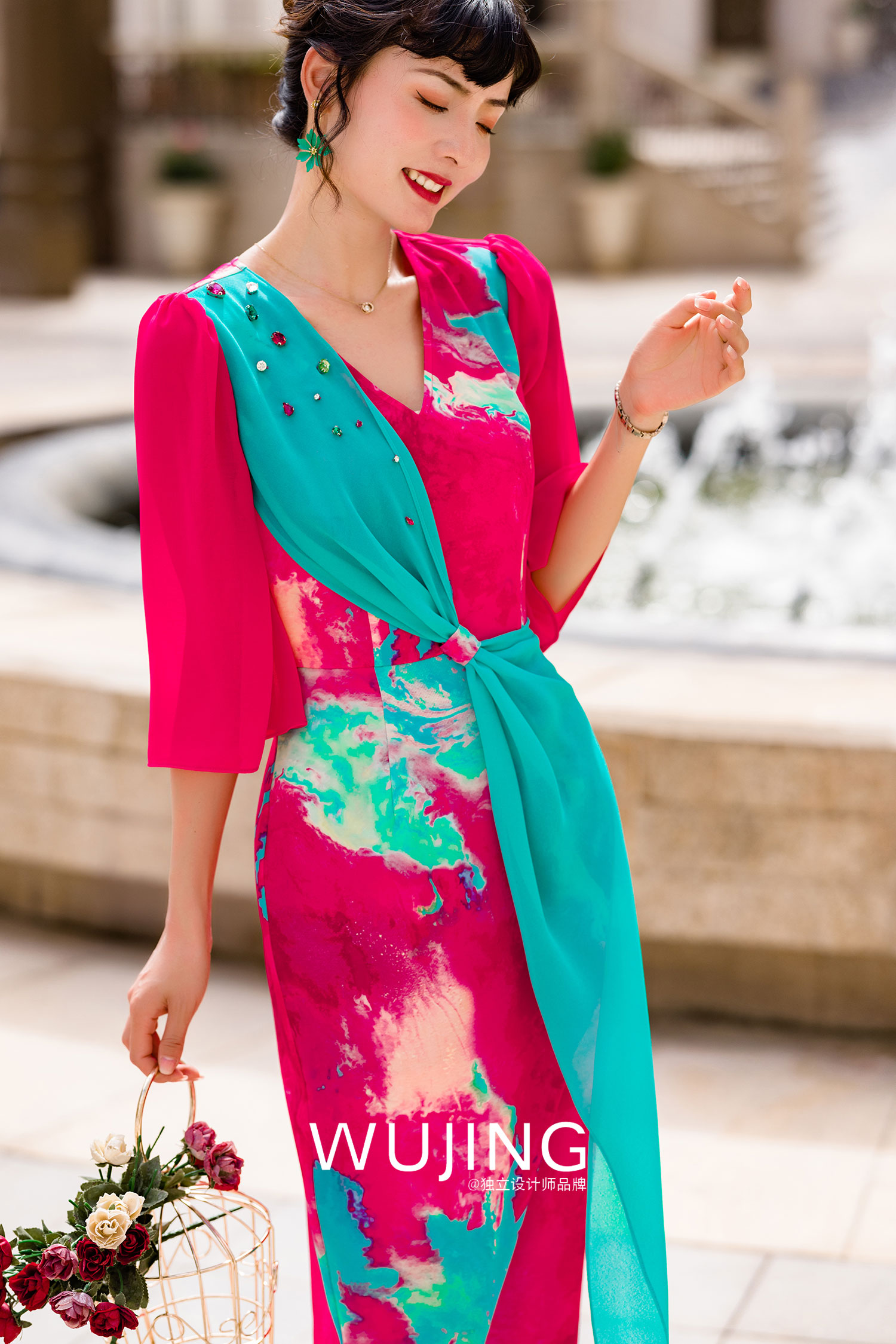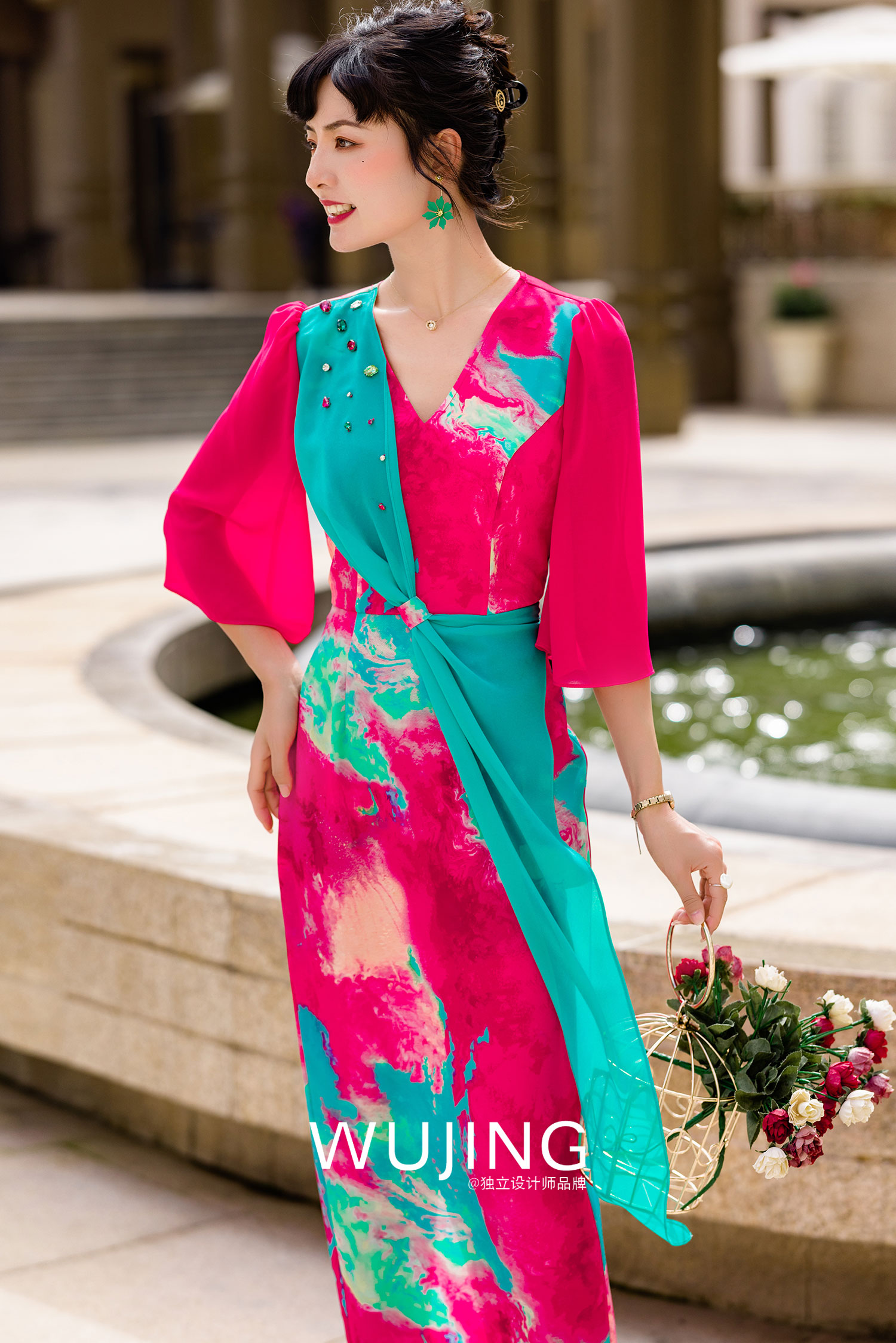 3022092 海棠醉日 树莓红连衣裙 雾境