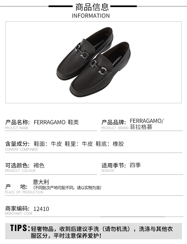 【新品到仓超惠秒】Salvatore Ferragamo 菲拉格慕 男士经典百搭马蹄扣商务休闲皮鞋 12410
