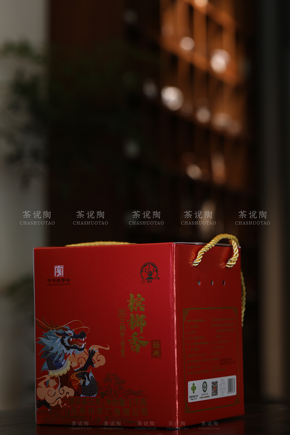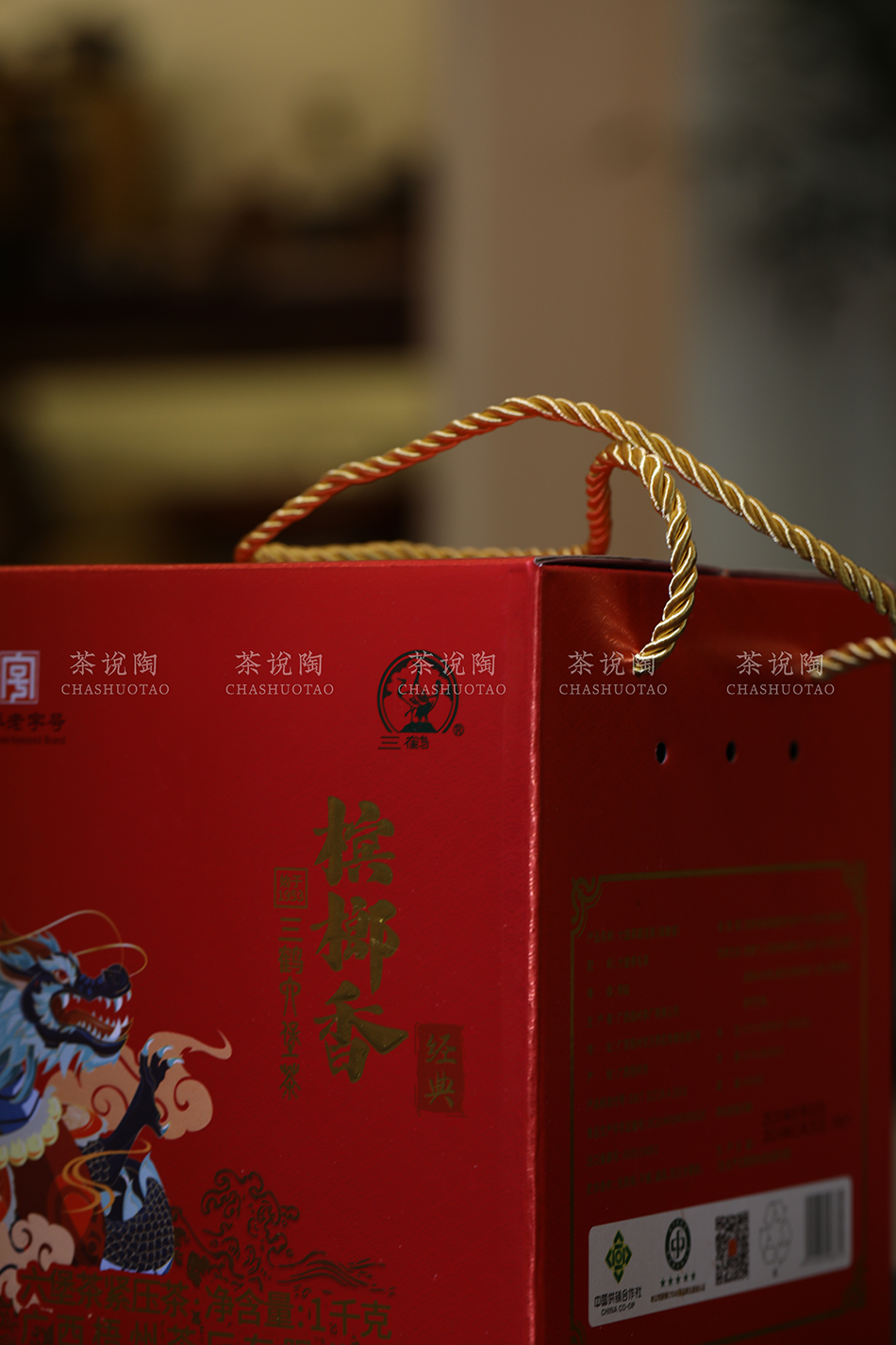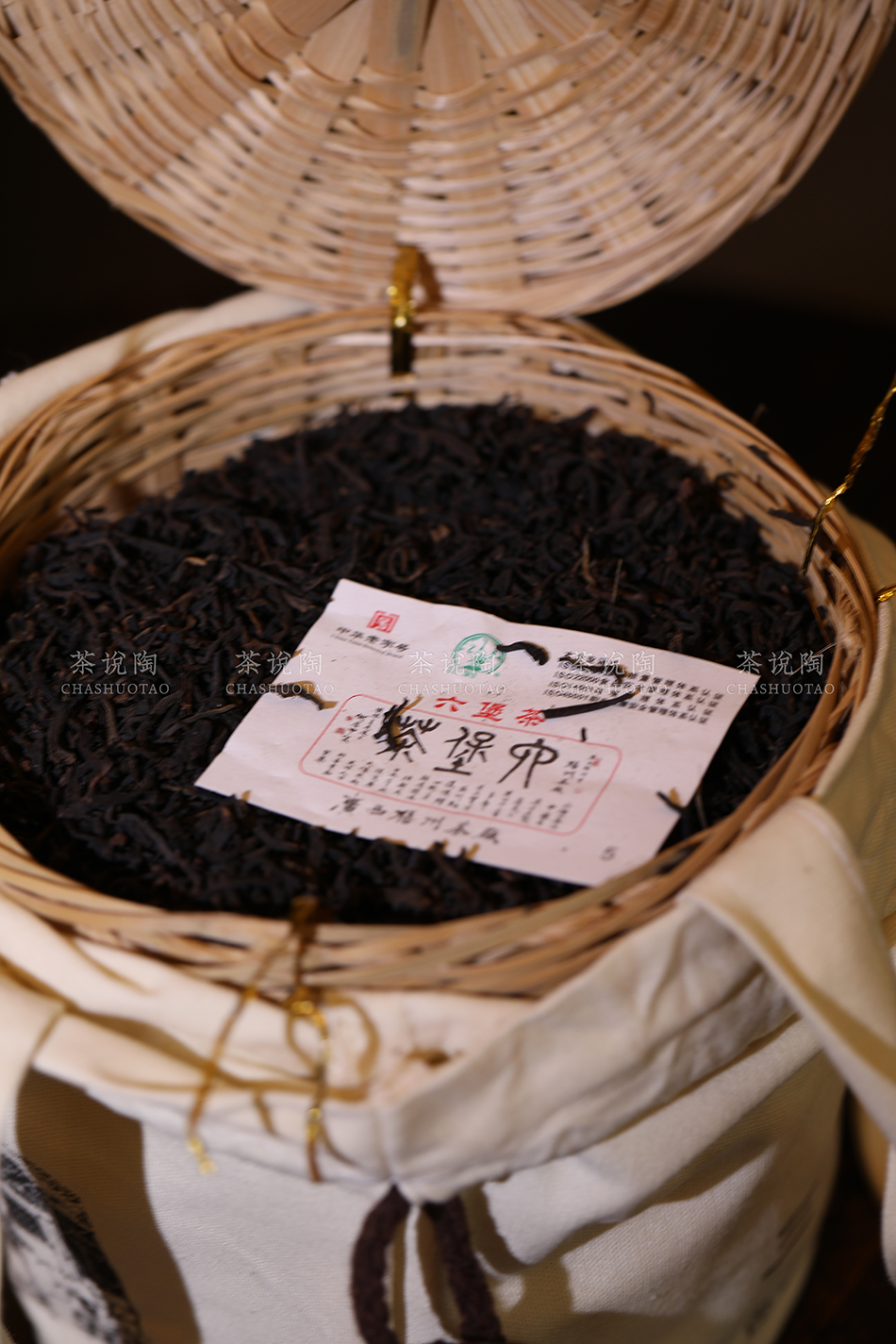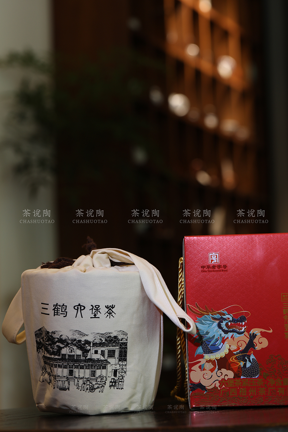 三鹤六堡茶经典槟榔香特级紧压茶竹箩高山黑茶广西梧州茶厂