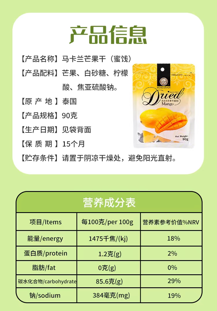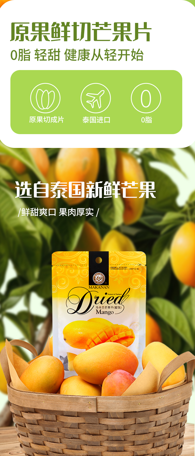 泰国马卡兰芒果干90g/050060-1 原果鲜切芒果片果肉厚实