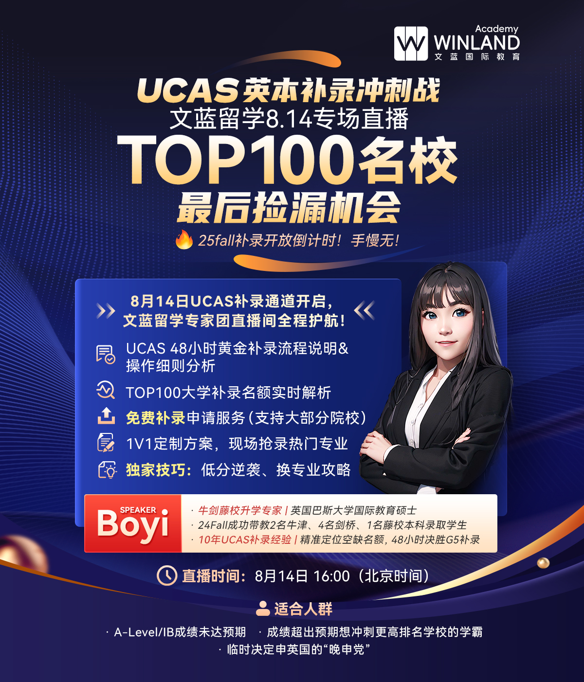 【8.14】UCAS英本补录冲刺战!TOP100名校最后捡漏机会! 🔥 25fall补录开放倒计时!手慢无!