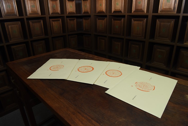 不同于传统的“北平信笺”“十竹斋笺谱”,了如指掌红瓦笺采用秦汉时期的瓦当拓片,图片来源于著名金石学家王懿荣所藏印《秦汉瓦当牛拓本集》。
