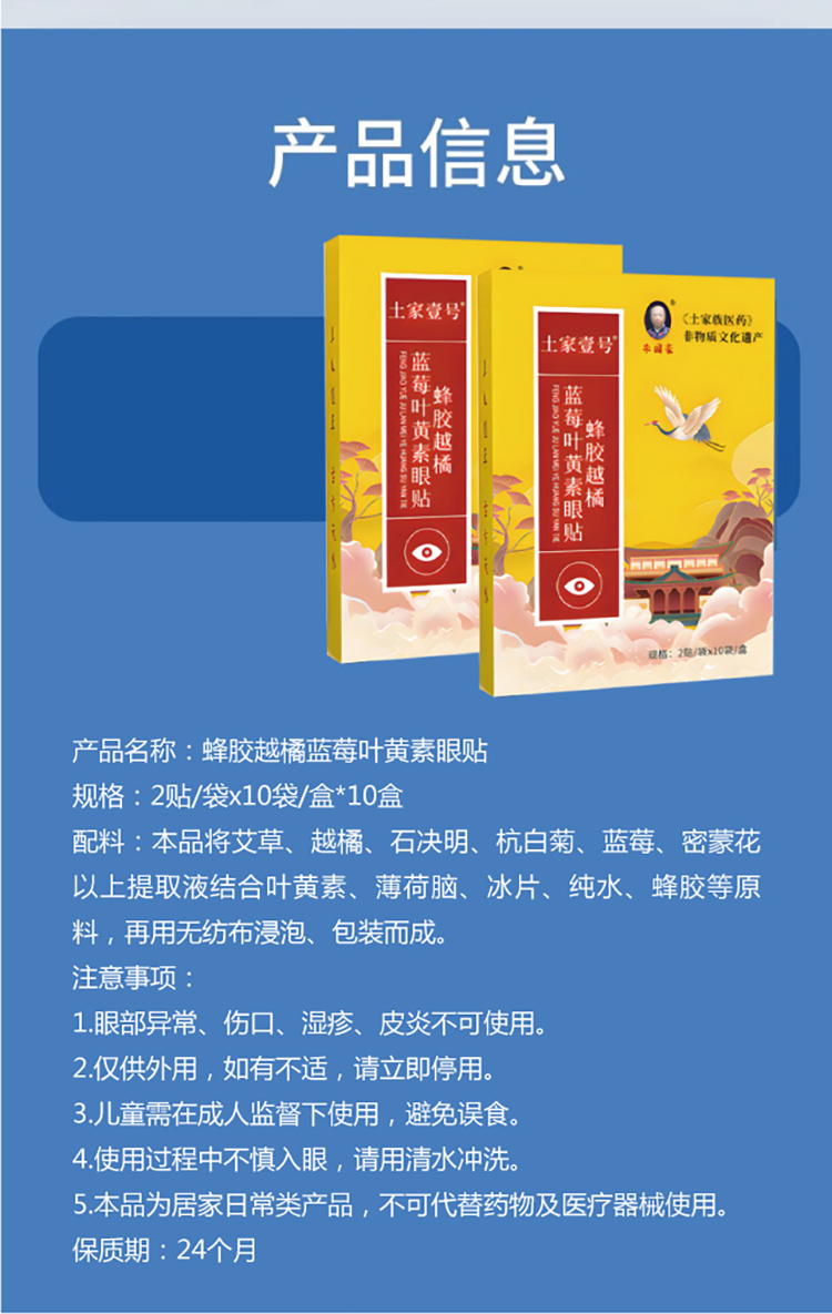 土家族医药、世界非物质文化遗产【蜂胶越橘蓝莓叶黄素眼贴】
