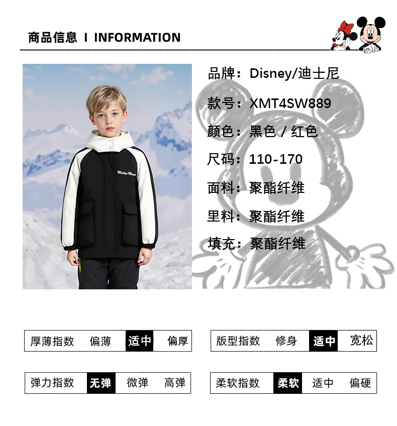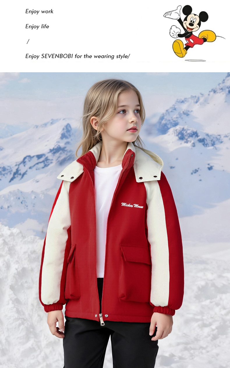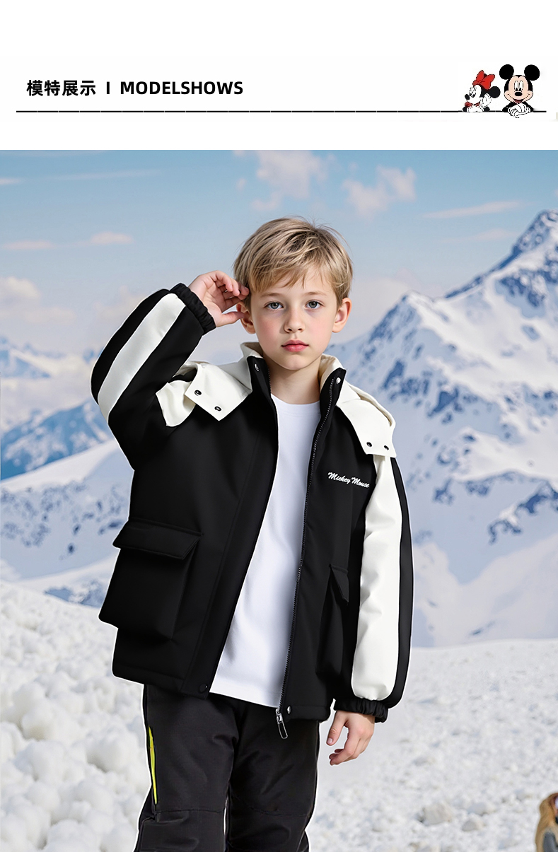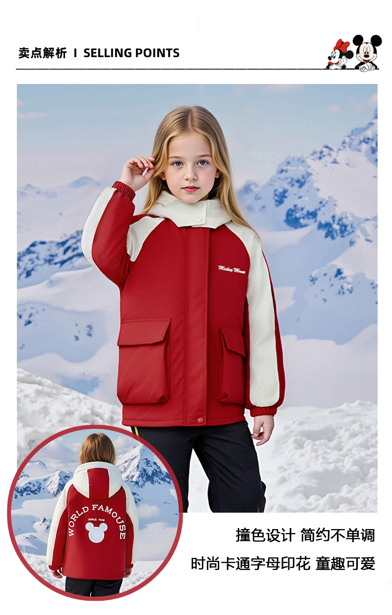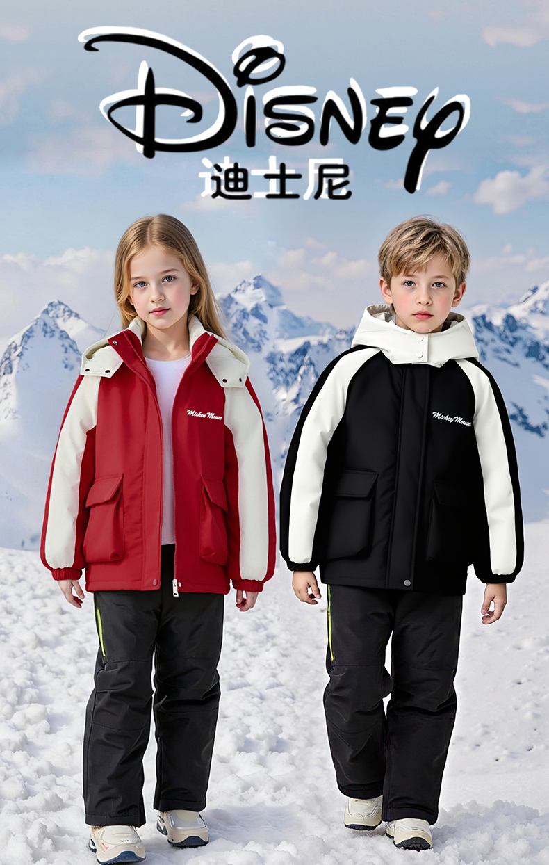 Disney/迪士尼儿童冲锋衣外套男女中大童撞色连帽休闲夹克外套秋冬新款