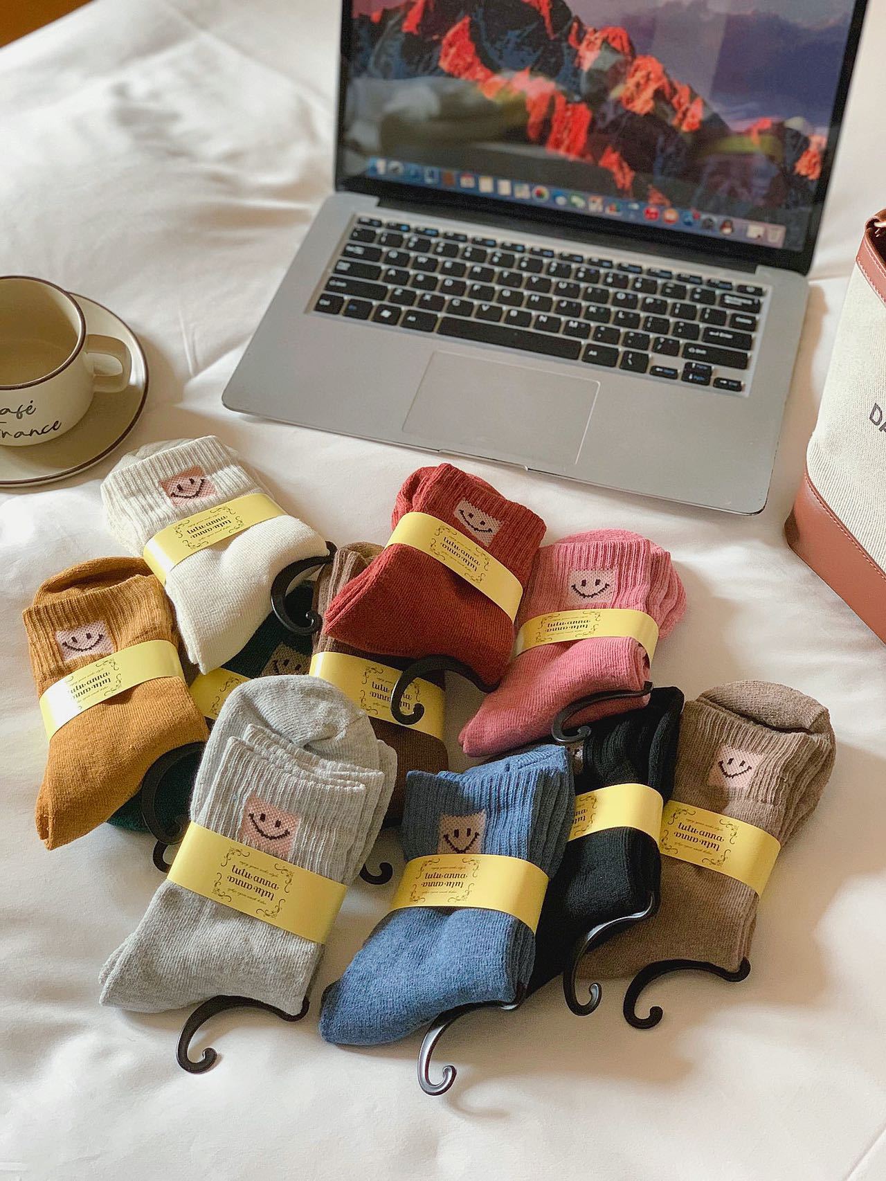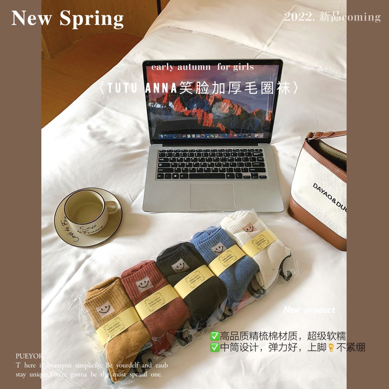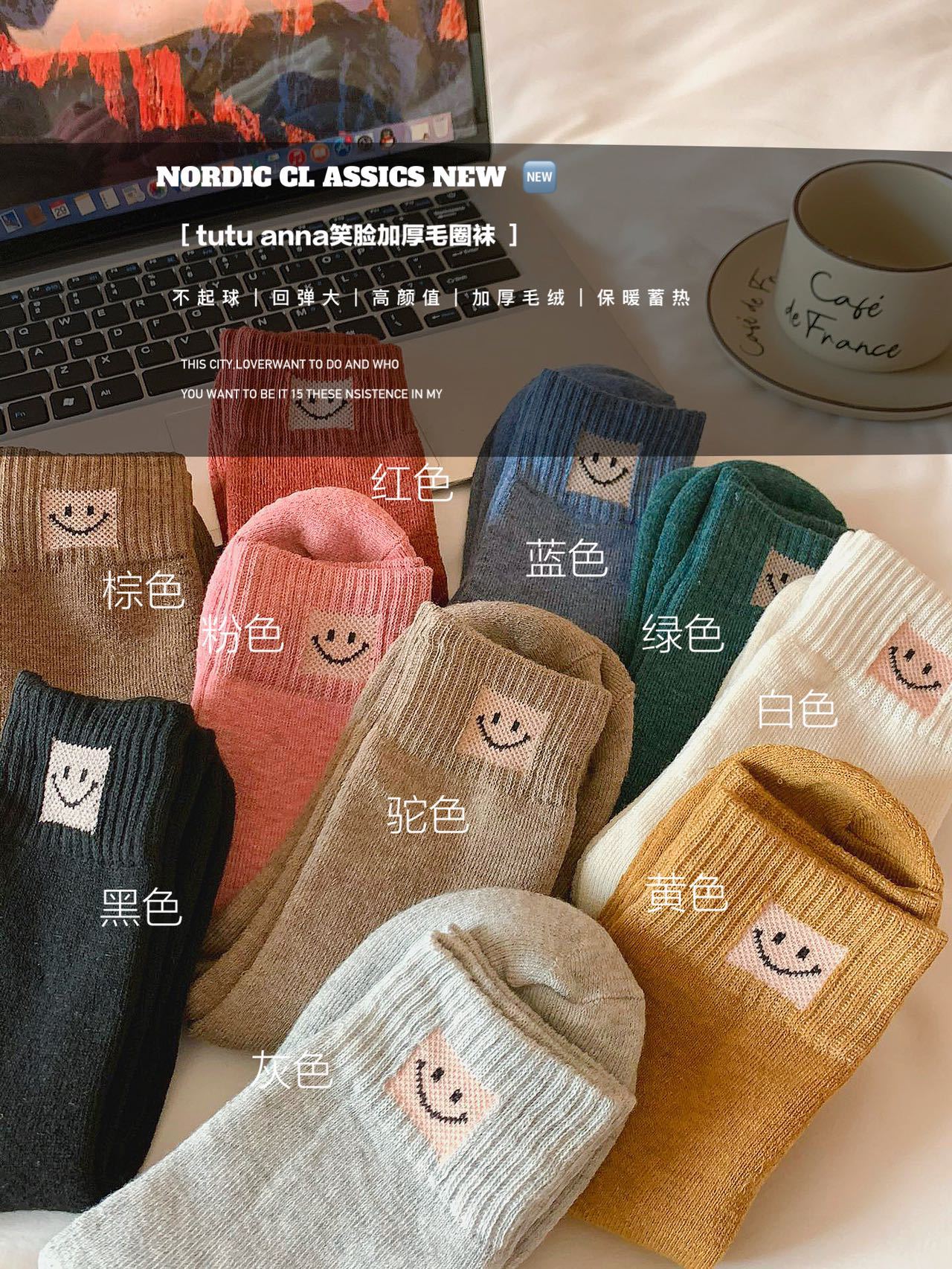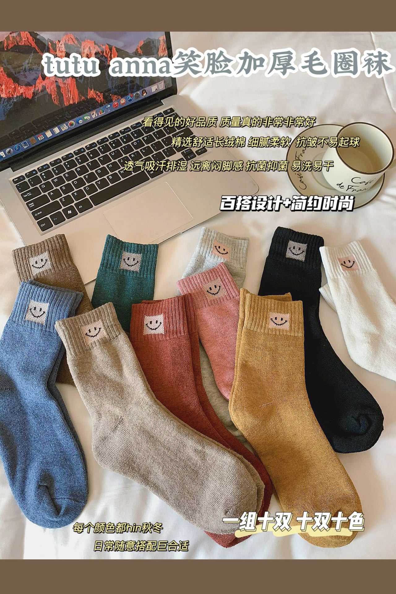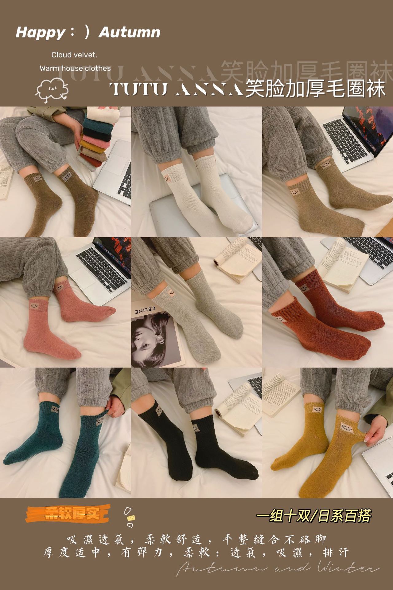 tutu anna笑脸加厚毛圈袜中筒仿羊毛毛巾地板袜保暖女冬季袜子10双装