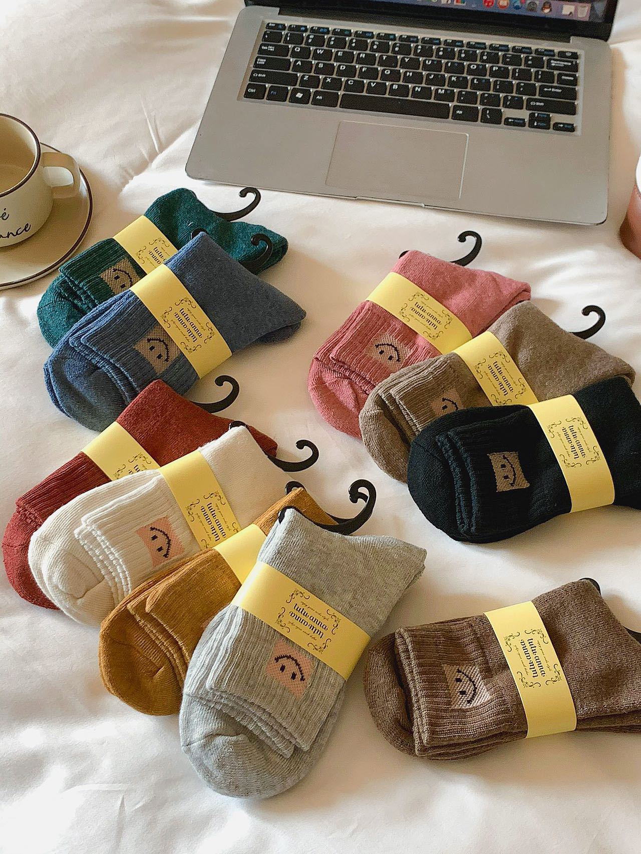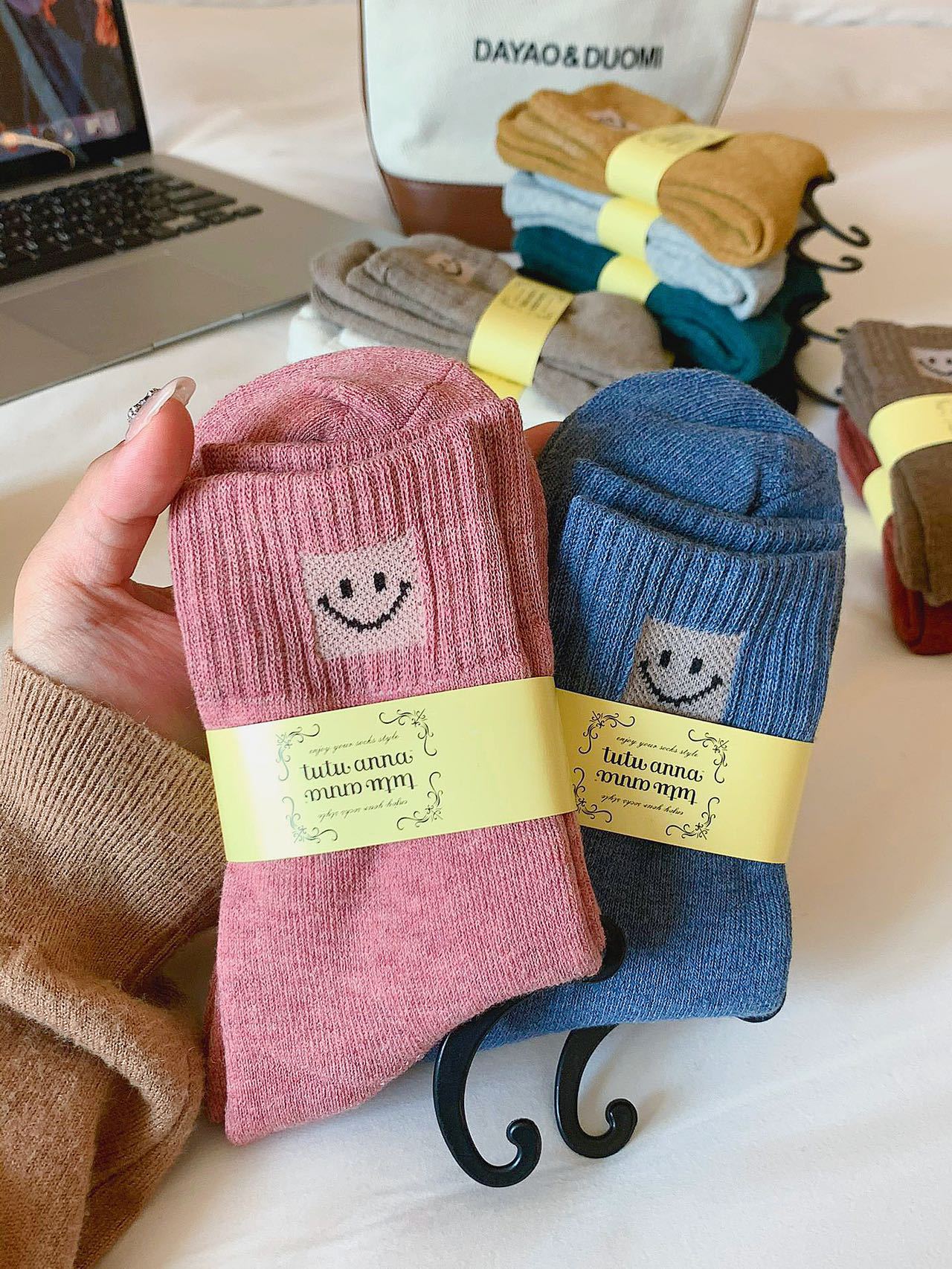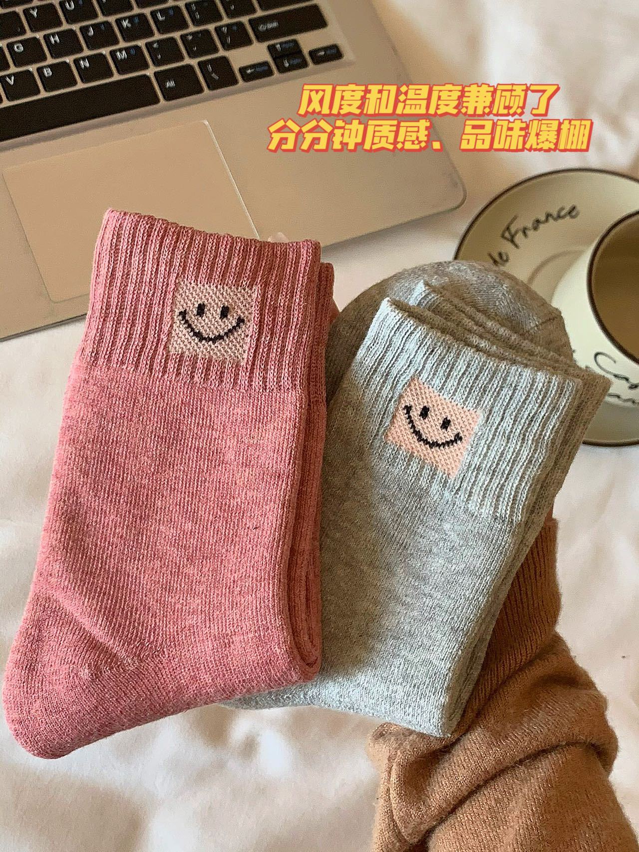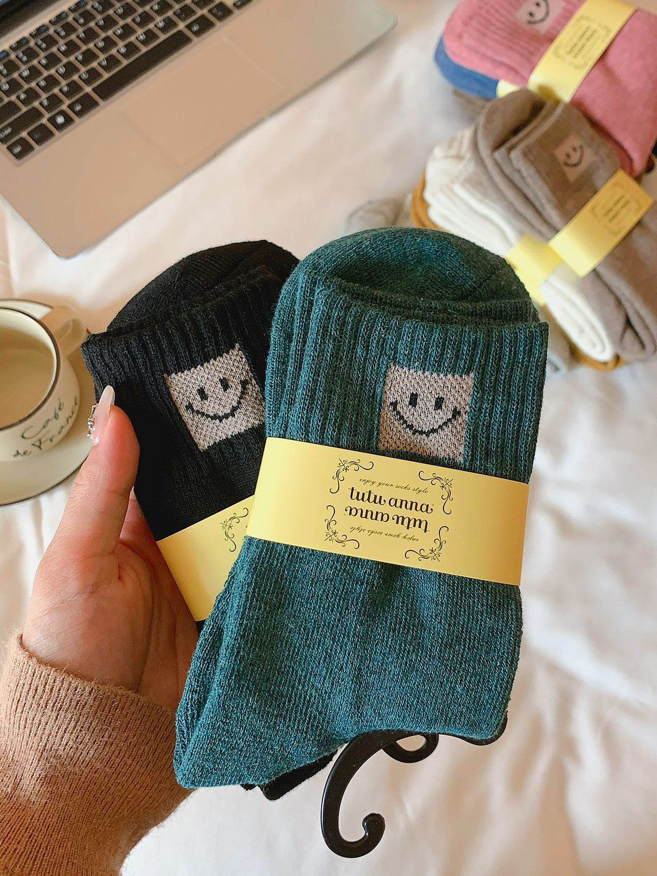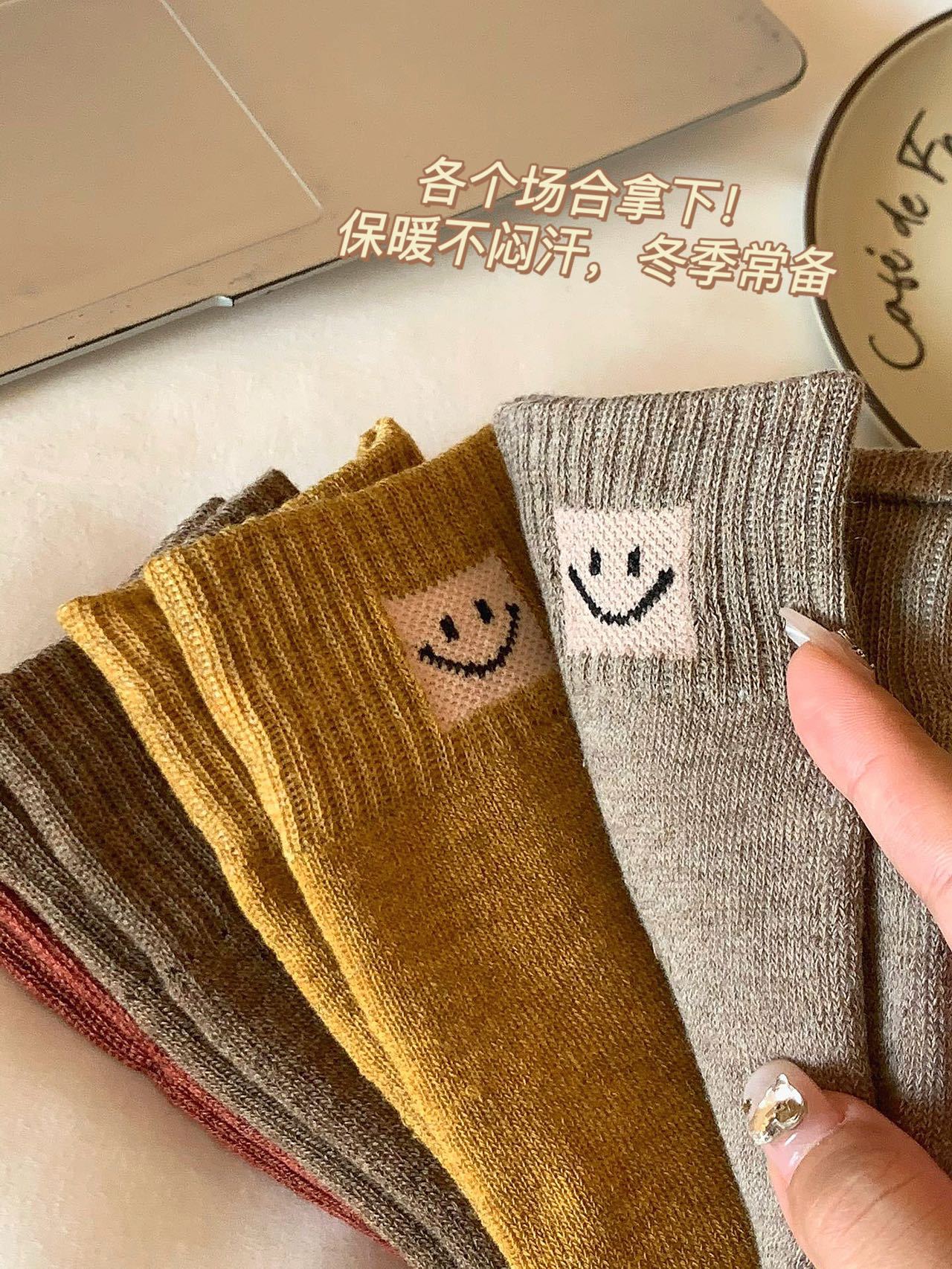 tutu anna笑脸加厚毛圈袜中筒仿羊毛毛巾地板袜保暖女冬季袜子10双装